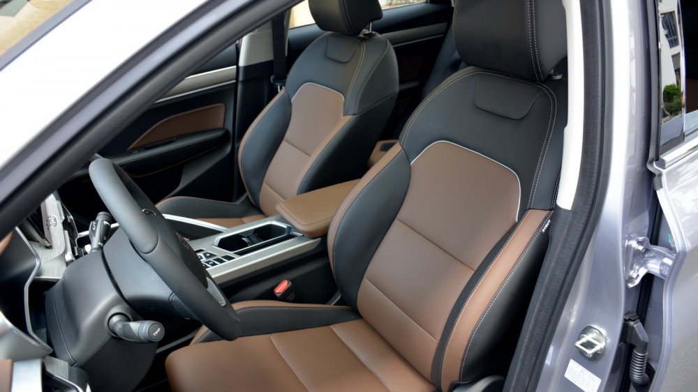Сиденья тоже вполне удачные: жесткость средняя, подушка не коротка, но боковой поддержки меньше, чем кажется на вид. В китайском списке оснащения для модели есть и электроприводы водительского кресла, но в большинстве версий регулировки механические. Руль настраивается и по высоте, и по вылету, а диапазоны регулировки вполне приличные. В сочетании с достаточной длиной салазок водительского сиденья это должно означать комфорт практически для любого водителя – впрочем, об этом вряд ли стоит судить при собственном росте чуть за 170. Эта же поправка справедлива и для заднего ряда: он не тесный, и угол наклона подушки заднего дивана обеспечивает весьма удобное пребывание, но о точном запасе места в коленях и над головой мы поговорим при более личном знакомстве с автомобилем.