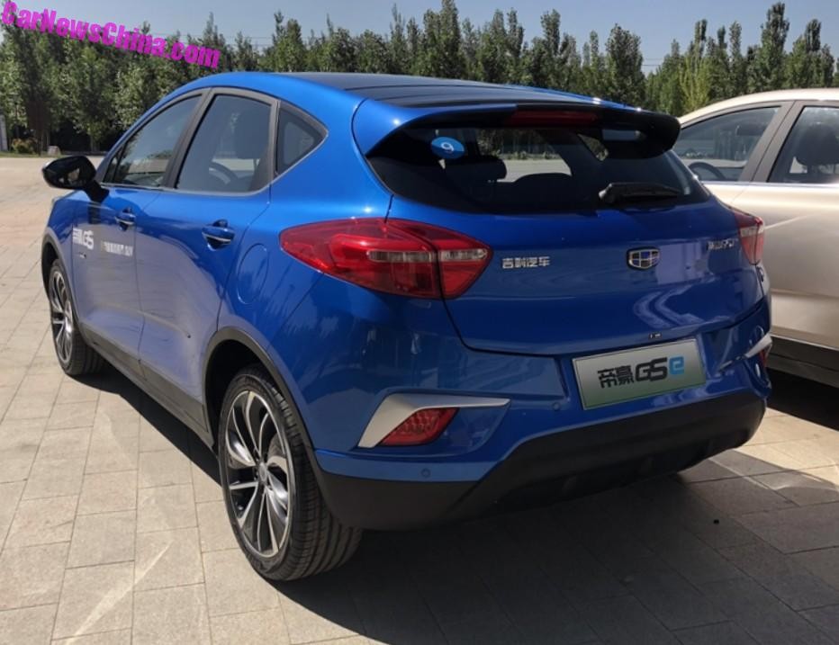 Фотографии новинки засветились на известном портале Carnewschina. Судя по ним, электрокар действительно очень сильно похож визуально на кросс-хэтч Emgrand GS с классическим двигателем внутреннего сгорания, однако есть и отличия: электрическая версия получила обтекаемую решётку радиатора и новый передний бампер.