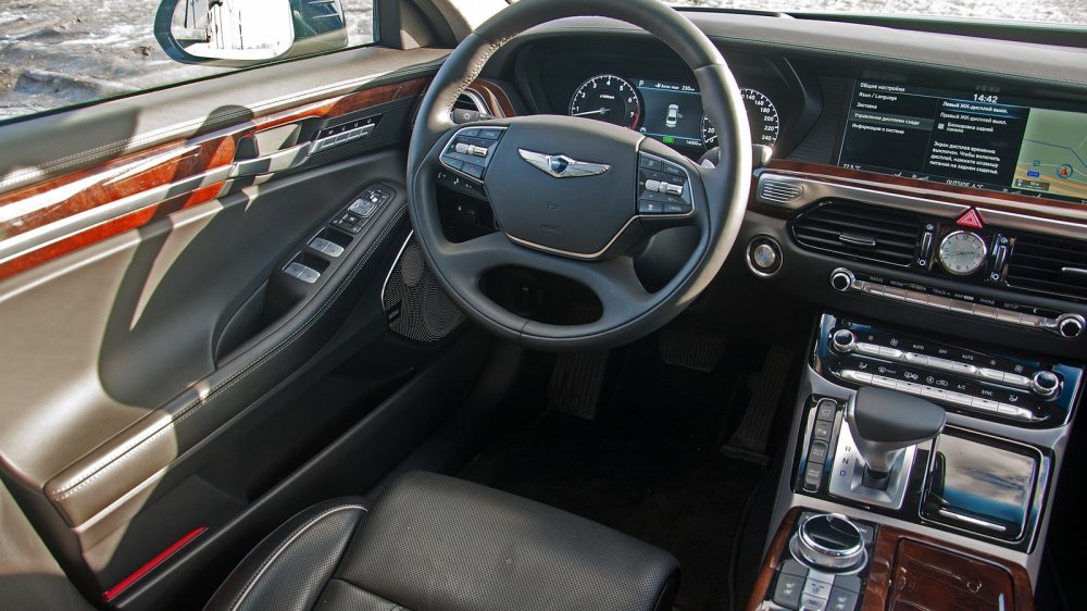 Пневматическая подвеска, турбированный рядный мотор, выдающий по 110 лошадей с литра объёма, преселективный «робот», система «старт-стоп» и биксеноновая оптика – это не про Genesis. Этот автомобиль гораздо более интересный, причём интересный в своей конструкции, которая так сочетает современный комфорт и олдскульность в лучшем смысле этого слова, что увидевший его нечаянно Mercedes-Benz W140 ушёл бы рыдать за угол.