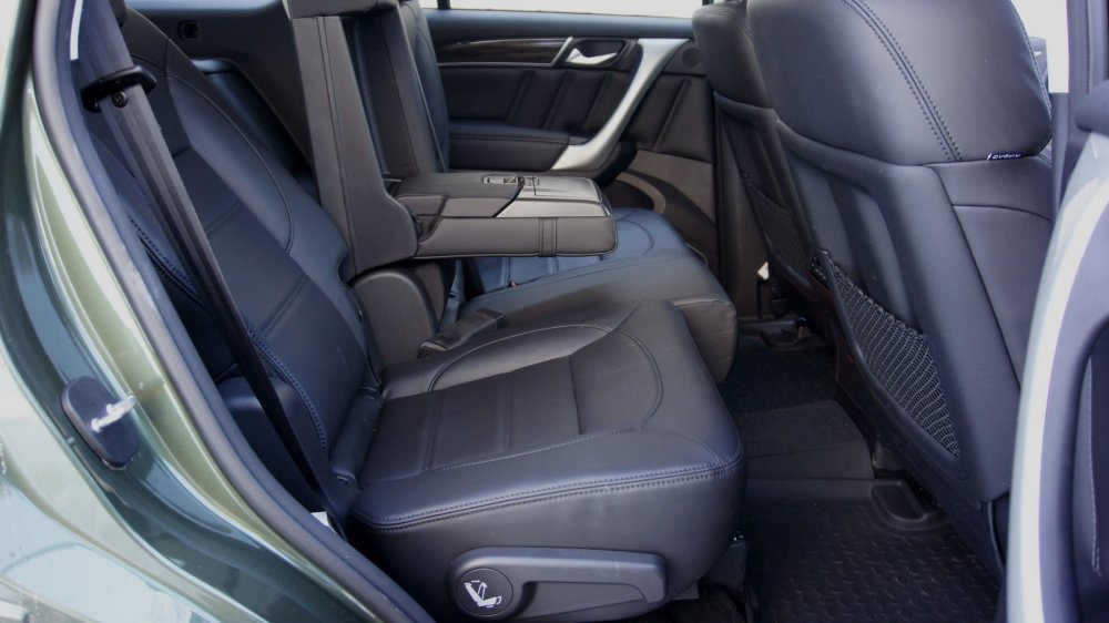 Пассажирам заднего ряда доступно очень многое. Во-первых, конечно, роскошный простор и регулируемые продольно и по углу наклона спинки кресла. Во-вторых, климатический блок с подогревом сидений (и нормальными двуступенчатыми кнопками, в отличие от первого ряда, о чём чуть ниже), с собственной регулировкой температуры и направлений потоков воздуха. Удобства посадки и размещения троим добавляет почти ровный пол, а двоим — многофункциональный подлокотник в спинке дивана. Зарядить гаджеты помогут спрятанные в пепельнице гнёзда USB и розетка на 12 вольт. Но отмечу, что разъём USB в переднем подлокотнике практически не заряжает телефон, предназначаясь лишь для мультимедийного подключения.