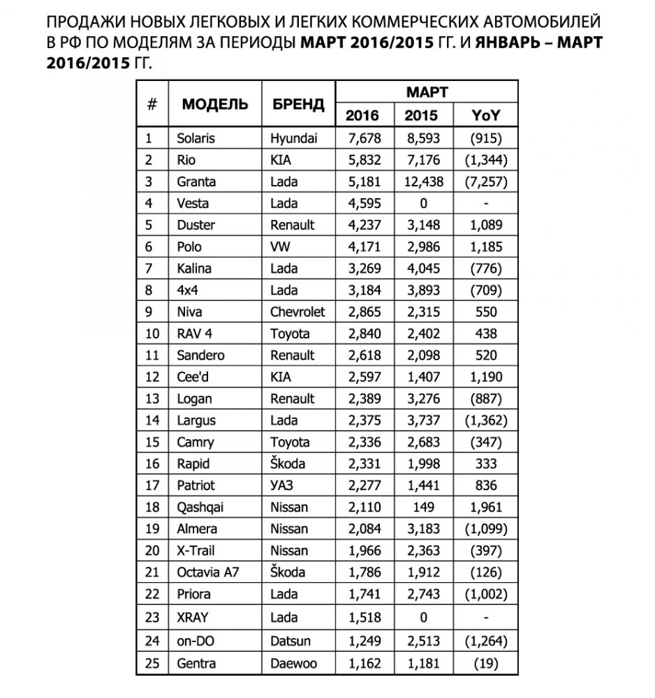 Среди тех, чью динамику мы назвали «почти положительной», Renault и Volkswagen. Французский бренд потерял всего 1% относительно прошлого марта – 9 448 авто против 9 507, а немецкий – 2%: 6 007 реализованных машин против 6 150. Чтобы быть до конца честными, можно добавить к ним Daewoo – точнее, Ravon: сокращение продаж у окончательно узбекского бренда составило скромные 5%. В штучном выражении это 1 677 автомобилей по сравнению с 1 757, что, впрочем, по-прежнему довольно скромно для бюджетной марки.