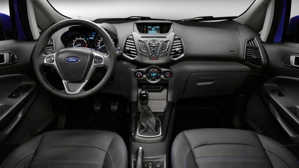 Попаданием в данный обзор EcoSport обязан исключительно щедрым фордовским скидкам. Именно скидкам, во множественном числе, поскольку с учетом одной общей скидки, колеблющейся от 90 до 200 тысяч рублей, в зависимости от комплектации, минимальная стоимость автомобиля составляет 1 064 000 рублей. Другое дело — если сложить эту выгоду с бонусом по утилизации и Трейд-ин (60-160 тысяч) и присовокупить экономию по фирменной кредитной программе (30-35 тысяч): тогда свежую машинку 2016 года выпуска можно взять в комплектации Trend Plus за 991 000 рублей. От базового Тренда она отличается легкосплавными дисками вместо стальных, климат-контролем вместо кондиционера, кожаной отделкой руля и рычага коробки, а также наличием противотуманных фар, подогрева передних сидений и ветрового стекла. Такие позиции, как электростеклоподъемники, АБС, ESP и пара подушек безопасности, предлагаются для Экоспорта по умолчанию.