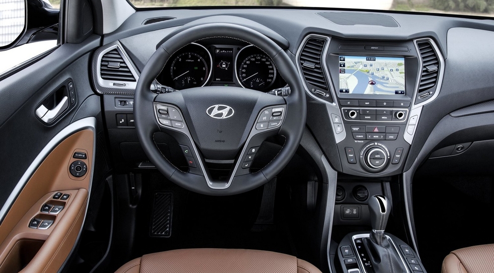 Доступная нам комплектация Santa Fe подтверждает вышеуказанный тезис. Называется она Dynamic, оценивается в 2 010 000 рублей и включает в себя ксеноновые фары, кожаный салон, подогрев руля, зеркал и всех сидений, датчик света и камеру заднего вида. Что касается таких удобств, как датчик дождя, электростеклоподъемники, круиз-контроль и т. д., не говоря уж о легкосплавных дисках и противотуманках, то они есть и в более дешевых комплектациях, включая базовую Comfort за 1 674 000 рублей. Мы же можем получить еще навигационную систему и водительское кресло с электроприводами, доплатив 55 тысяч рублей (2 065 000 рублей).