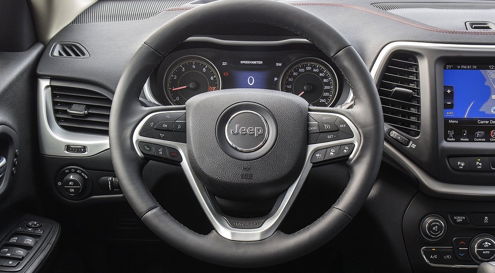 Российское представительство Jeep объявило до конца года специальную скидку на Cherokee: стартовая цена – 1 399 000 рублей вместо 1 849 000. Но имеется оговорка «предложение ограничено наличием автомобилей», а конфигуратор на корпоративном сайте выдает цены без скидки, и нам он предлагает за 2 049 000 рублей полноприводный автомобиль в «средней» комплектации Longitude. Это означает наличие литых дисков, мультимедийной системы с пятидюймовым сенсорным дисплеем, коленной подушки безопасности, как у Santa Fe, круиз-контроля, двухзонного климат-контроля, системы контроля давления в шинах, электромеханического стояночного тормоза, мультифункционального руля и электростеклоподъемников.