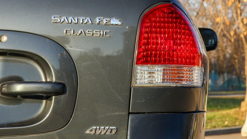 Интересно, что полный привод у Санта Фе первого поколения действительно постоянный, с блокировкой вязкостной муфтой и самоблокирующимся дифференциалом в заднем мосту. Сейчас такая конструкция выглядит переусложненной для кроссовера, но на рубеже веков это было в порядке вещей: подключение задней оси муфтой ещё не вошло в моду.