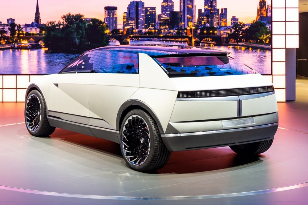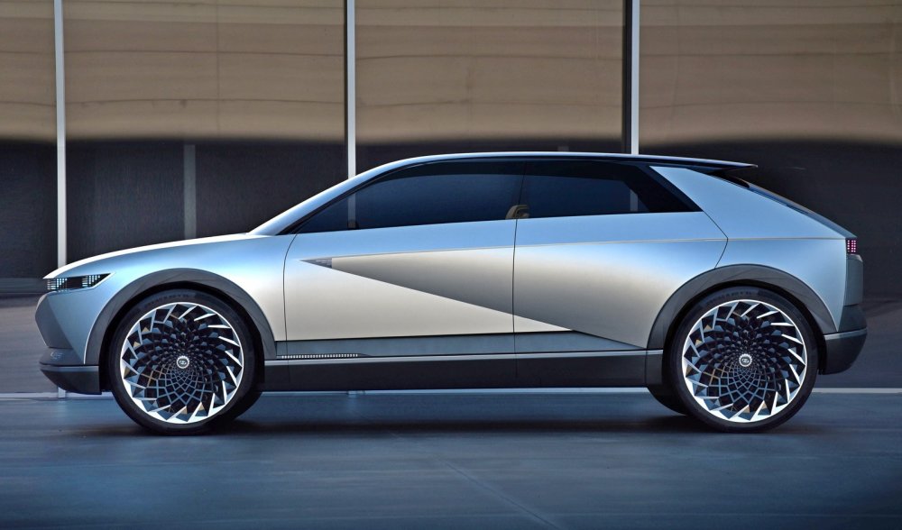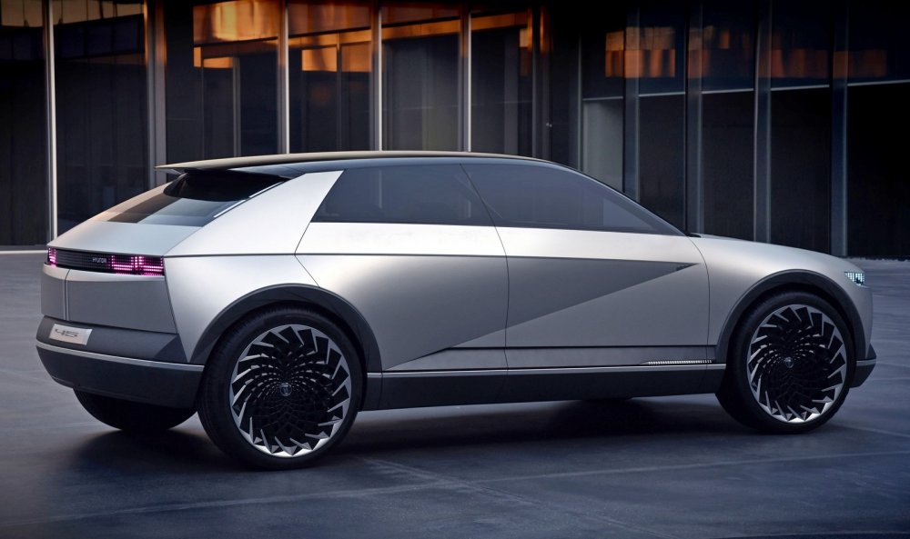 Современный Hyundai 45 апеллирует к обоим предкам: он перенял у них угловатый образ в стиле 70-х, но об Italdesign в официальном релизе почему-то упоминания нет, и нынешний концепт разработан силами собственной дизайн-студии. Получилось неплохо, при этом производитель утверждает, что подобным образом будут оформлены будущие серийные электромобили Hyundai. Да-да, хэчтбек 45 – это электромобиль, построенной на типичной для современных машин такого типа скейтборд-платформе, с батареей, вмонтированной в пол. О технических характеристиках ничего не сообщается – пока только дизайн.