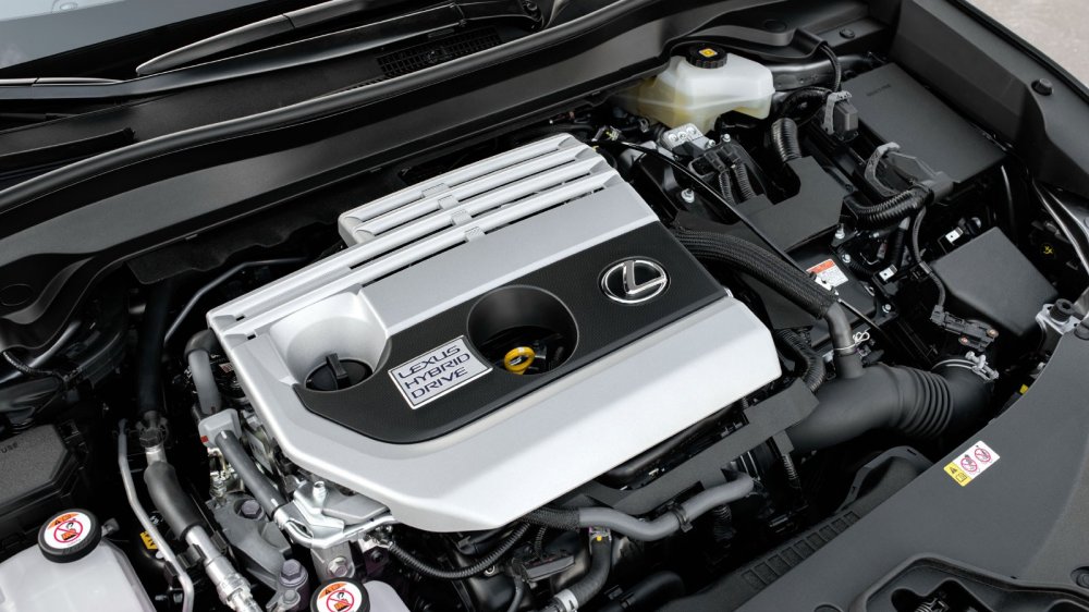 Базовый двигатель здесь – тот же двухлитровый 238-сильный 8AR-FTS, что и у NX, а альтернатива ему – 3,5-литровый V6 семейства GR. В чисто бензиновом исполнении он выдает 301 л.с., а в гибридном дефорсирован до 262 – и схема трансмиссии принципиально не отличается от той, что мы обсуждали в NX. При этом заявленный средний расход – даже меньше, чем у более компактного и слабого NX: 5,3 л/100 км.