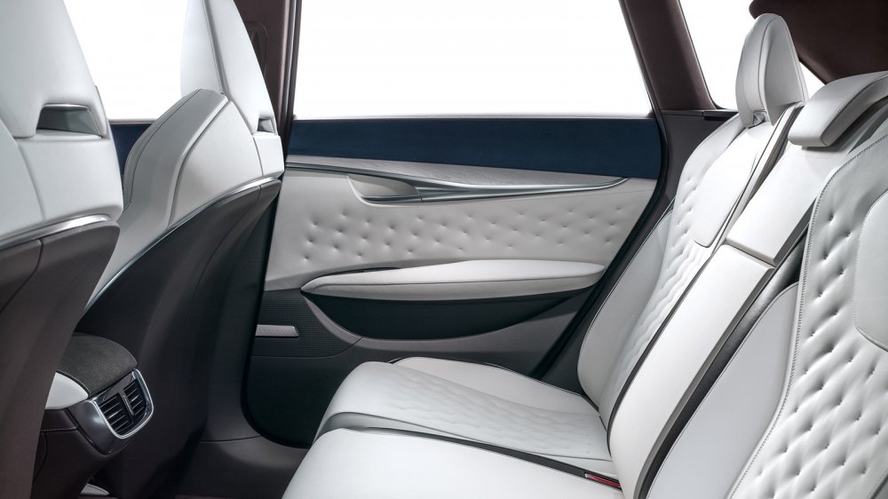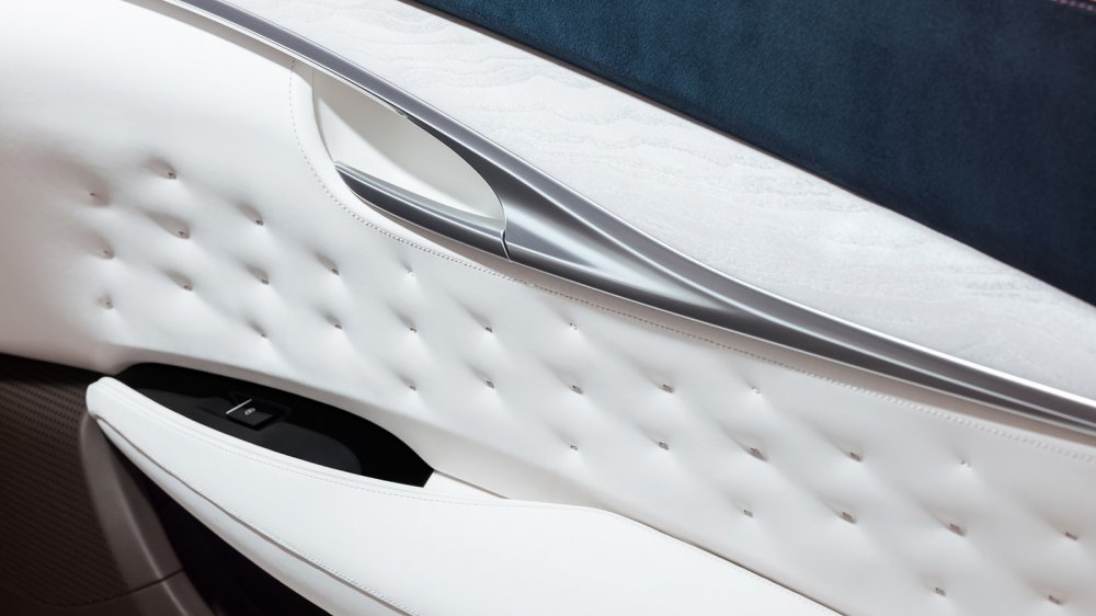 Отдельного рассмотрения заслуживает салон и методы его отделки. Кроме того, что здесь использовано несколько видов натуральной кожи, японские мастера применили совершенно новую запатентованную технику её крепления к дверным панелям и основанию спинки кресел. Кожа крепится к поверхности точечно, что создаёт впечатление классического роскошного дивана.