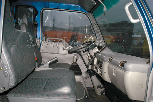 Традиционно начинаем с кабины. Впечатление она производит весьма благоприятное: дизайн и эргономика близки к легковым иномаркам. Кажется удачным светло-коричневый пластик дверей и торпедо, выполненное в современной стилистике: закругленные линии, плавные переходы плоскостей. При этом материал довольно приятный на ощупь и, как показалось, не скрипучий. Элементы интерьера, кажется, тоже подогнаны на совесть: зазоров почти нет, а где без них не обойтись – они симметричны и одинаковы. Кнопки в гнездах сидят плотно, не болтаются, срабатывают без сильных надавливаний.