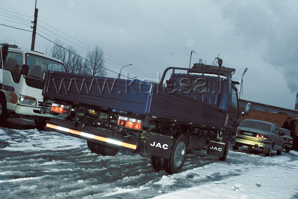 Производитель же нашей машины – JAC (Janghuai Automobile Company) – работает с Isuzu и Nissan. Основой линейки стало семейство легких грузовиков Isuzu NHR, NKR, NPR и NQR модельного ряда конца 90-х, а у Nissan была куплена лицензия на двигатели, которыми оснащаются машины. Кстати, заметим, что грузовики Isuzu оказались достаточно популярны для "воспроизведения": их копии выпускало турецкое отделение компании, они же стали прототипом американских Chevrolet серии W 1999-го модельного года.