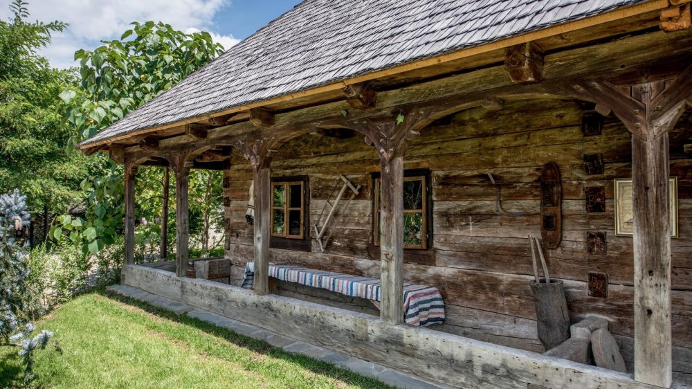Была у нас и возможность познакомиться местными обычаями поближе: туристический комплекс Gradina Vlahiia (что в переводе означает «валашский сад»), где мы остановились на обед, включает в себя не только ресторан национальной кухни, фруктовые сады, конюшни с лошадками, скотный двор со всяким парнокопытным поголовьем, птичник, пруд с наглыми и жадными карпами и огромными, а оттого и не менее наглыми лягушками. Стоят там несколько вывезенных из деревень старинных домов под четырехскатными крышами из дранки, с опоясывающими дома верандами, с хитрыми щеколдами, которые можно открыть только специальной палочкой определенной длины. Возраст домов — от ста до двухсот лет. В домах — музей крестьянского быта: ткацкие станки, прялки, чесалки для льна, конопли и шерсти, немудреная керамика с традиционными узорами. И земляные полы. Вот, наверное, блох там было… В гостевых домиках для любителей набирающего обороты этнографического туризма полы, естественно, нормальные, деревянные.