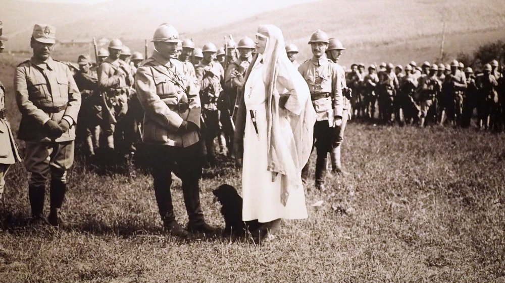 Мария окунулась в дела военные со всей страстью: ездила на фронт, в белом платье сестры милосердия встречала на ясском вокзале эшелоны с ранеными и больными тифом солдатами. Ее стали называть «матерью раненых», «солдатской королевой» — почти все время Мария проводила в военных госпиталях, где самоотверженно ухаживала за ранеными. В итоге державы Тройственного союза были повержены, и во время победного парада королева Мария в полковничьей форме прошла под Триумфальной аркой в Париже во главе эскадрона румынских гусар.