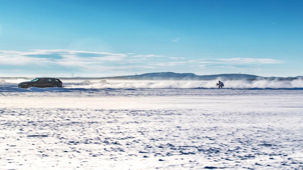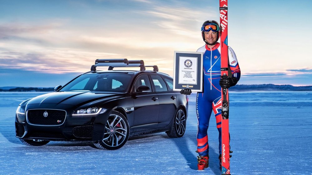 Jaguar XF Sportbrake с прицепленным лыжником «на хвосте» смог разогнаться до 188 км/ч, что является новым мировым рекордом. Бывший лыжник команды Великобритании Грэм Белл составил компанию универсалу в рекордном заезде.