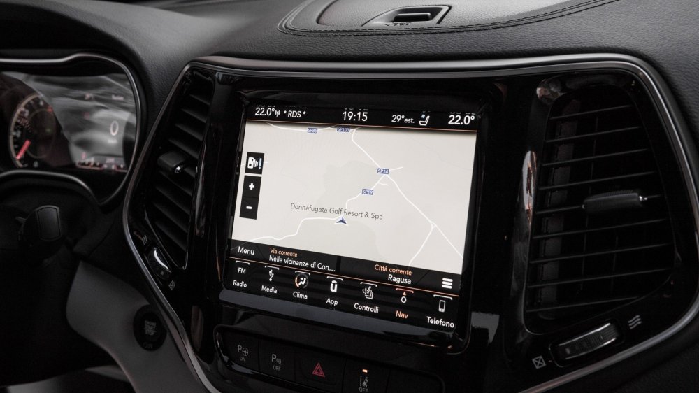 Передняя панель встречает достаточно простой архитектурой, но добротными материалами – модный нынче пластик с имитацией прострочки, двухцветное оформление и немного бессмертного черного глянца. Бал здесь правит крупный экран мультимедийной системы – в базовом варианте он имеет диагональ в 7 дюймов, а в продвинутом – 8,4. В отличие от многих «коллег» тачскрин обладает не только быстрым откликом, но и весьма достойным разрешением – как у планшета средней ценовой категории. В Jeep этим, видимо, так возгордились, что вынесли на него все что можно и нельзя, включая управление подогревом и вентиляцией сидений. Ну хоть климатический блок самостоятельный – и на том спасибо.
