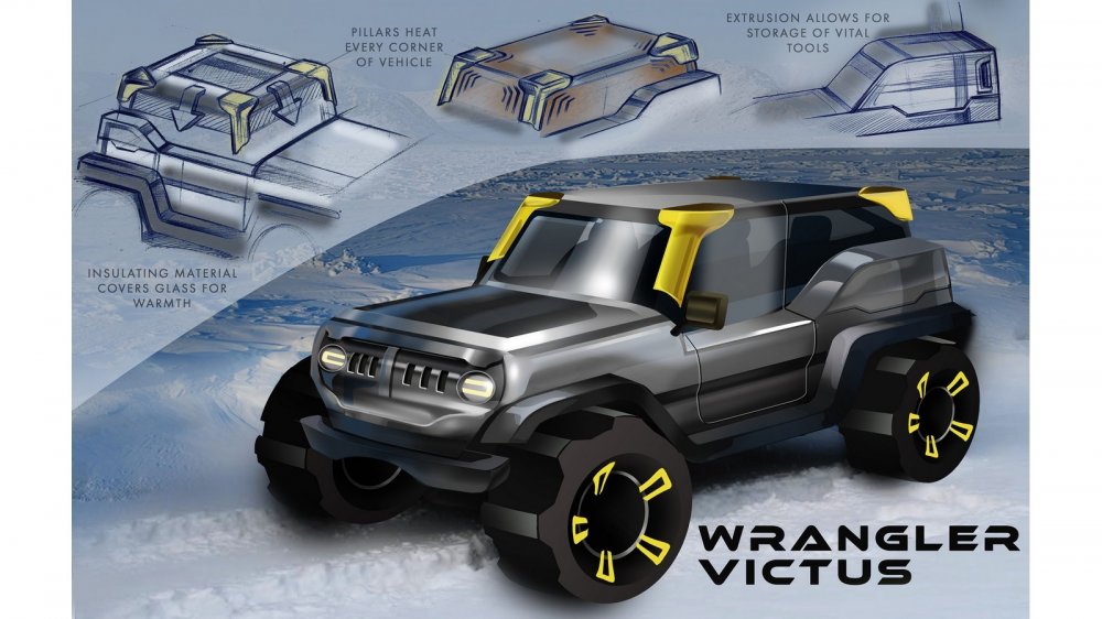 На втором месте Эмили Брайсон, представляющая тоже самое учебное заведение, с проектом под названием Jeep Wrangler Victus. Концепт предназначен исключительно на эксплуатацию в зимних условиях. Его внешность во многом повторяет стиль актуальной модели, но с оригинальной конструкцией крыши и дополнительными отсеками для хранения вещей.