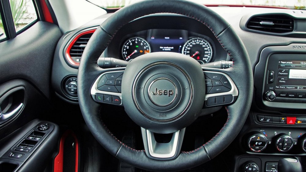 Но именно руль — это первое, отчего с TrailHawk хочется познакомиться поближе. Чуть шершавая, обтянутая кожей толстая баранка с едва заметными прихватами идеальна для больших рук, а жесткость ее хода совершенно нетипична для конструкций с электроусилителем.