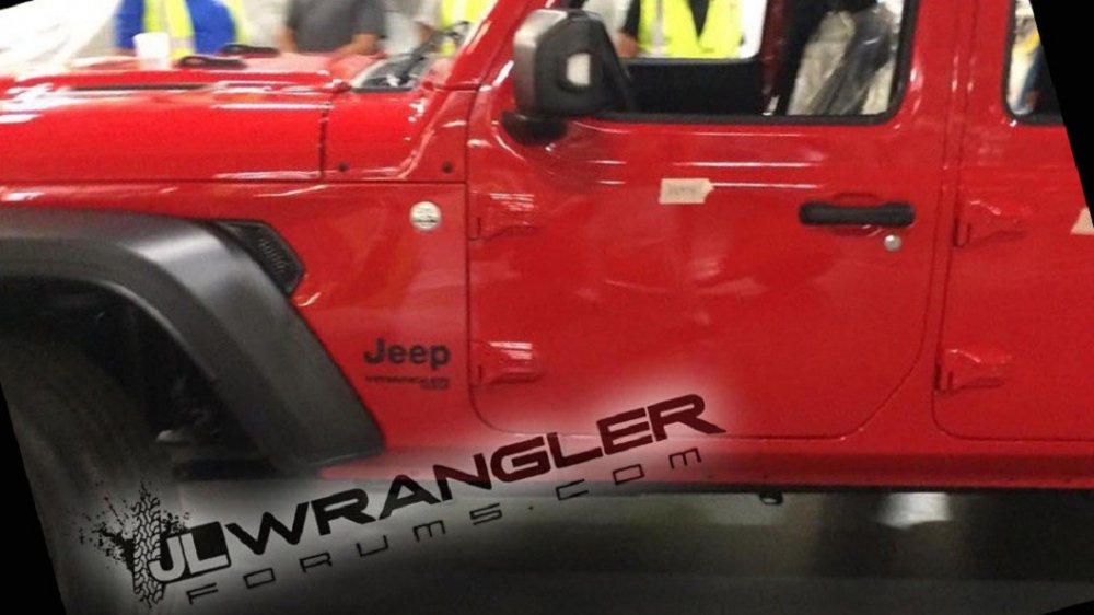 Эксклюзивными снимками прямиком с завода Толедо поделилось сообщество JLwranglerforums. К сожалению, на сделанные наспех фотографии попала лишь часть внедорожника. Тем не менее, источнику этого оказалось достаточно чтобы предположить, что это версия Sport. Помимо этого данные снимки подтверждают истинность предыдущей утечки.