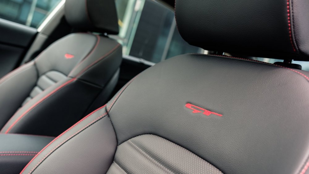 А вот ProCeed GT, с его уменьшенным на 5 мм дорожным просветом, увеличенной жесткостью пружин и стабилизатора поперечной устойчивости и перенастроенными амортизаторами — это совсем другое дело… Ты садишься в кресло с развитыми боковыми валиками и отделкой из черной кожи и искусственной замши, с красной прострочкой и логотипом GT, ставишь ноги на педали с алюминиевыми накладками, кладешь руки на маленький пухлый спортивный руль с усеченным нижним сегментом, обтянутый качественной перфорированной кожей в зоне хвата, и начинаешь проникаться атмосферой азарта.