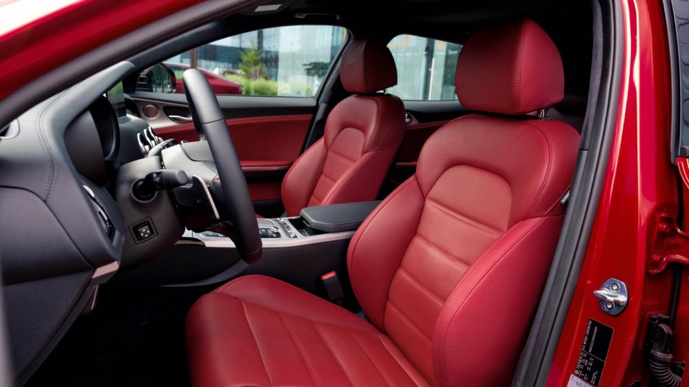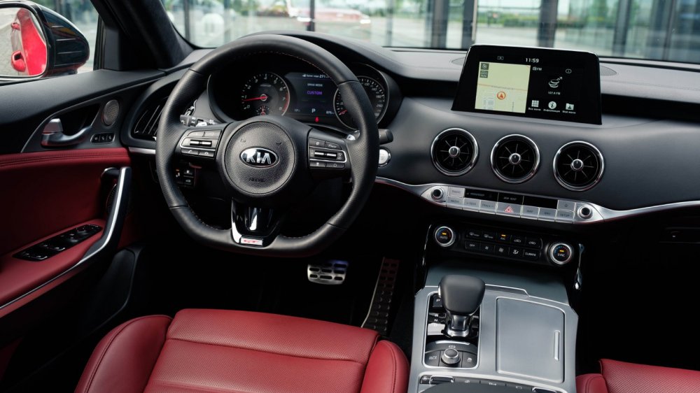 Такой разгон требует и соответствующих тормозов: Stinger GT щеголяет тормозными дисками диаметром 350 мм спереди и 340 сзади и тормозными механизмами Brembo (передними — с четырьмя суппортами, задние — с двумя).