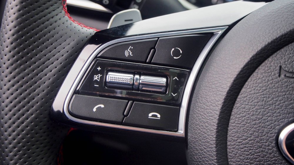 Внутри новый Soul тоже не разочаровывает: кресла с комбинированной обивкой и красной прострочкой, ухватистый D-образный руль, обтянутый исключительно приятной на ощупь кожей «наппа», большой информационный дисплей на приборной панели и главная доминанта: огромный широкоформатный тачскрин с диагональю 10.25” головного устройства медиасистемы, вписанный в овальную окантовку: над экраном — дефлекторы системы вентиляции, под ним — кнопки управления медиасистемой. Посадка — почти вертикальная (а я это люблю), обзорность — отменная…