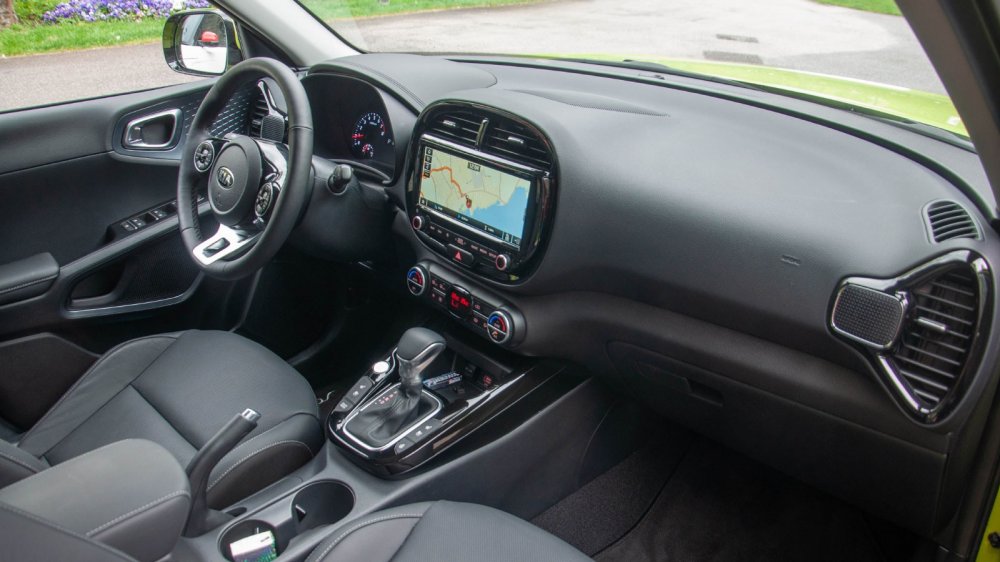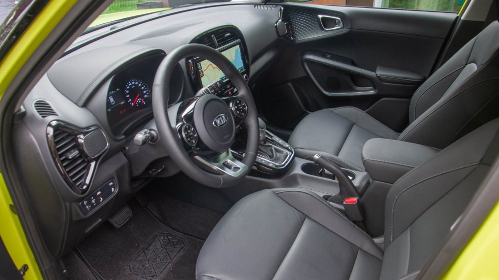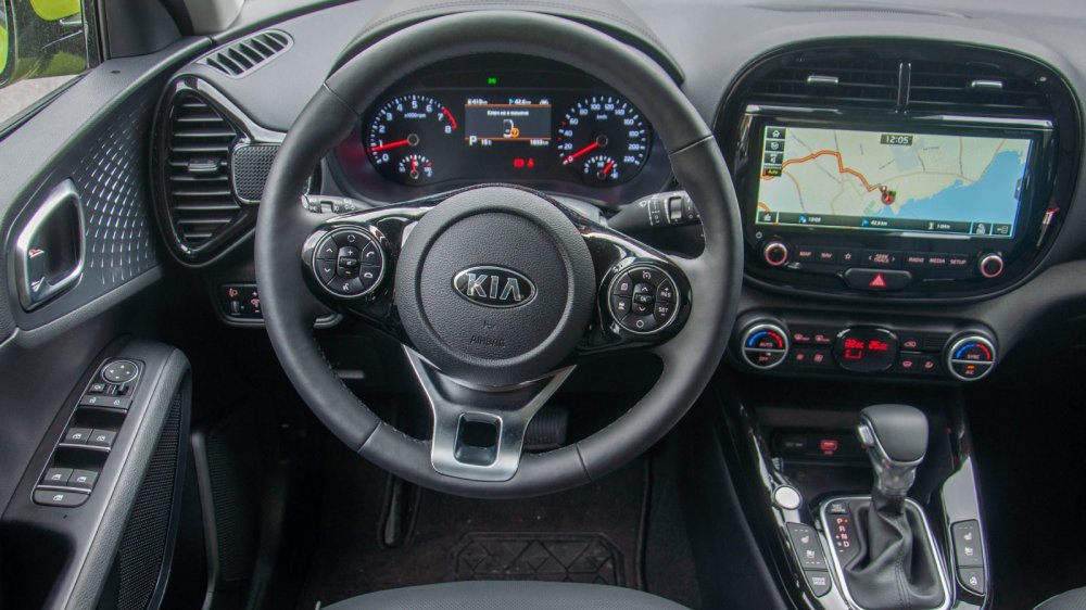 Скорее всего, дизайнеры Соула полагали, что ездить на нём лучше ночью. Это объясняет не только вышесказанное, но и довольно мрачный тёмный цвет салона. Ладно бы в нашей машине с кожаным салоном – коже это простительно (хотя, конечно, кожа тут сильно фейковая)… Но в «тряпочном» салоне заказать обивку повеселее нельзя. Придётся ждать темноты. И всё же сгущать краски не буду: даже в такой расцветке интерьер больше радует, чем расстраивает.