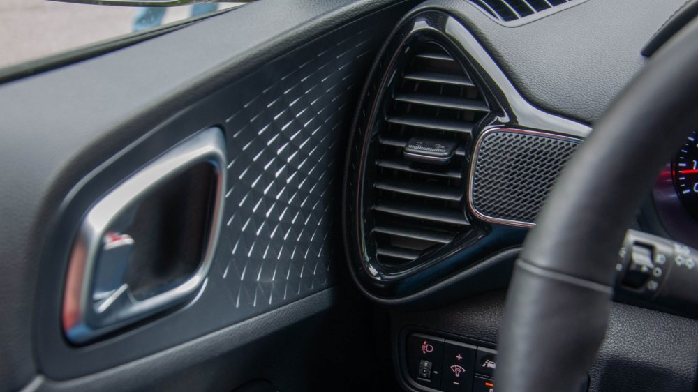 Так как первая машина, доставшаяся мне на тест, оказалась в самой топовой комплектации Premium+, то первое, на что я обратил внимание в салоне — это 10,25-дюймовый экран на панели. На мой взгляд, сама центральная консоль выглядит несколько странно – как сковорода, на которую бросили планшет. Эта сковорода зачем-то сверкает рояльным лаком и выделяется на фоне даже такого дерзкого интерьера. По мнению производителей, она должна стилистически увязываться с боковыми дефлекторами, выполненными одним блоком с панелью двери, на которой располагается ручка. При дневном освещении лично я этого не заметил. А вот ночью, в темноте, дело другое. Когда включаешь музыку, и салон начинает в такт ей менять подсветку, стилистическое единство действительно хорошо заметно.
