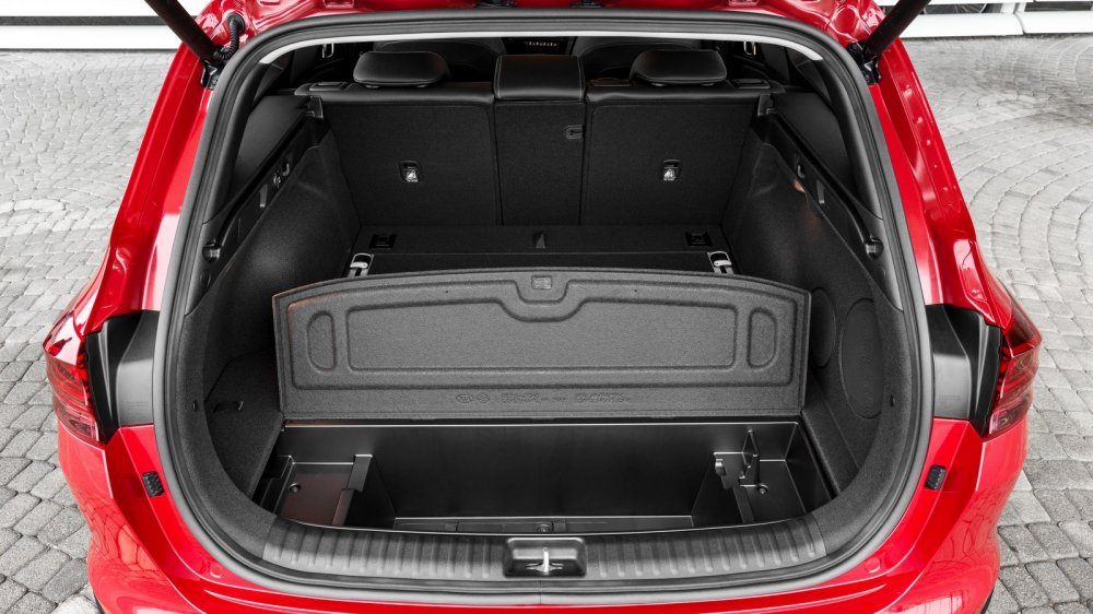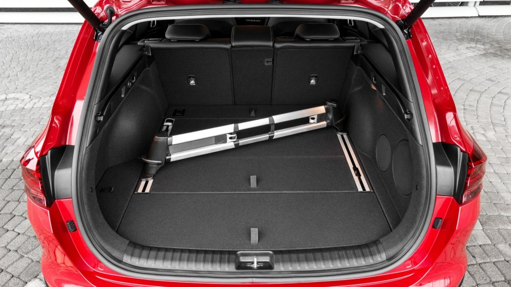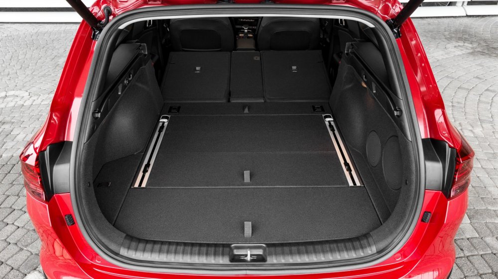 Сложить спинки заднего сиденья можно «в один клик» рычажками, расположенными на боковинах багажного отсека, – в результате образуется ровный пол без ступенек. Однако трёхсекционная спинка с разбивкой 40/20/40 доступна только начиная с комплектации Prestige (в более простых комплектациях секций будет две). Есть в багажнике и третье дно: под пластиковым лотком-органайзером находится ниша докатки – и всё это, заметьте, при многорычажной задней подвеске. Последняя, кстати, у универсала чуть отличается от задней подвески хэтчбека: в неё с расчётом на более частую полную нагрузку установили более жёсткие пружины и амортизаторы, и под эти изменения даже перекалибровали систему стабилизации (а на это уходят месяцы напряжённой полигонной работы). Однако механизма самовыравнивания под нагрузкой в заднем мосту нет – машинам С-класса он не положен, поэтому при полной массе (от 1 800 до 1 880 кг в зависимости от модификации) корма немного проседает и уменьшает исходный 150-миллиметровый дорожный просвет.