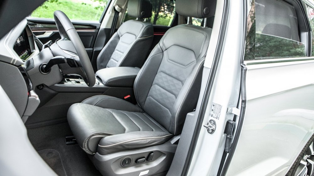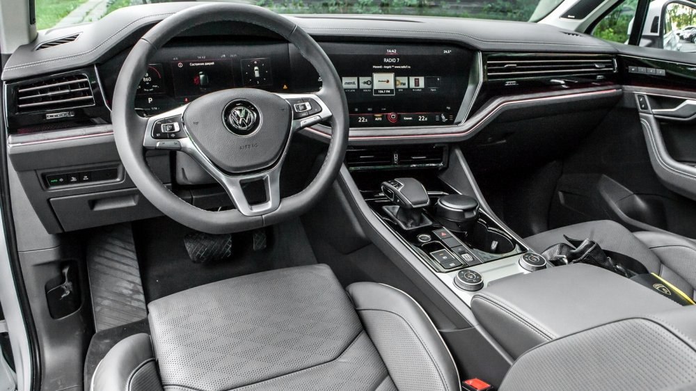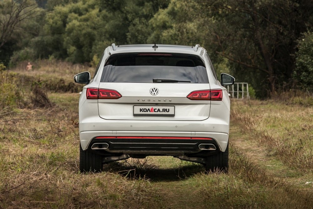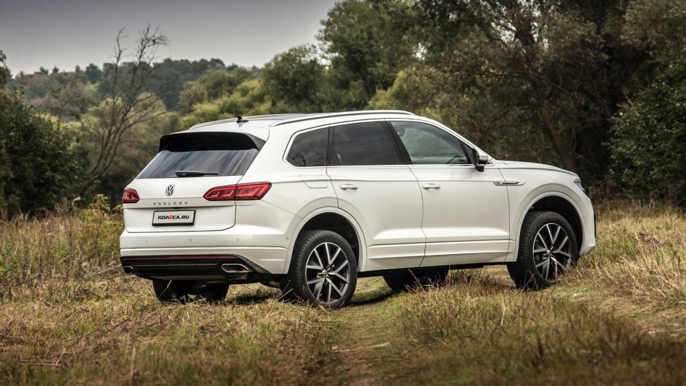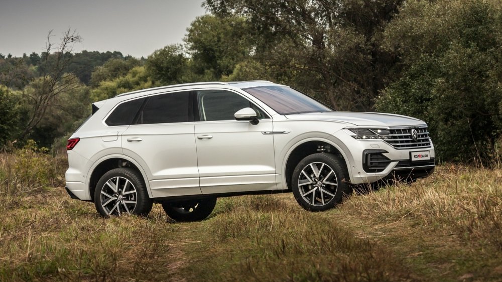 Если же сравнивать управляемость Touareg c одноклассниками (по размеру, а не по наличию премиального статуса), возьму на себя смелость утверждать, что не так уж и далеко этот «народный» отстоит от BMW X5 предыдущего (третьего) поколения. Да, не хватает остроты реакций и точности при прохождении поворотов, но Touareg – он ведь не только про водительское удовольствие, он – для всех пассажиров. Да, он мягче (но не до рыхлости), чем Х5, но при этом и комфортнее, с более высокой плавностью хода, которая, к слову, отнюдь не сопровождается раскачкой. Наоборот: всеядная подвеска уничтожает практически всю информацию о шероховатостях дороги, начиная от небольших выбоин в асфальте и заканчивая единичными препятствиями, при этом кузов остаётся непоколебим.