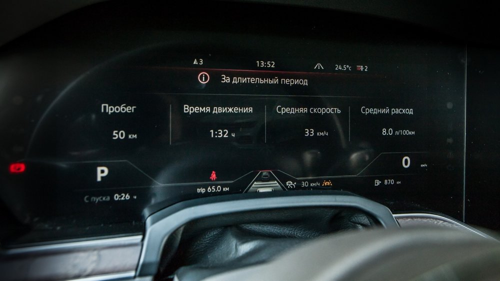 «Премиальное» сходство Туарега с одноклассниками почудилось мне не случайно. Дело в том, что на тест-драйв нам попалась самая что ни на есть навороченная комплектация R-Line (от 5,4 млн руб.) с «пневмой» и стабилизаторами поперечной устойчивости изменяемой жёсткости. В повороте электромеханические исполнительные элементы резко усиливают сопротивления скручиваемости, отчасти компенсируя крен, но при необходимости могут полностью разъединить две части прутка стабилизатора для более комфортного срабатывания. На управляемость и манёвренность играют и задние колёса нового Туарега, которые до скорости 37 км/ч поворачиваются в сторону, противоположную передним, а выше этой скорости – в ту же сторону, что и передние. Интересно, что у спортивных автомобилей (к примеру, у нового Cayenne) этот порог выше, хотя повороты меньшего радиуса они преодолевают на большей скорости. Собственно, именно у кроссовера Porsche и позаимствована вся эта чудесная механика. Более того, Touareg — пока единственный «фолькс», кому она вообще полагается. Неудивительно, что по асфальту едет он распрекрасно.