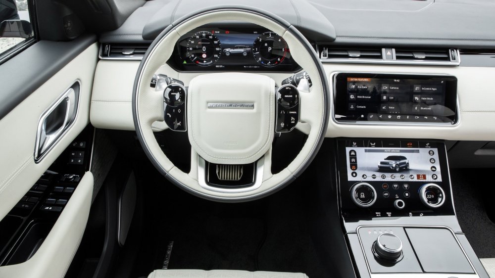 Наконец, органы управления на руле в виде блоков жестких емкостных сенсоров, которыми управляешь методом легкого поглаживания. Тут, конечно возникает вопрос: а не будут ли они срабатывать при каждом случайном касании, но чтобы дать на него ответ, все-таки нужно поездить на автомобиле чуть больше. Наконец, очень понравился проекционный дисплей: яркий, четкий, с возможностью воспроизведения анимации. Он не входит в стандартную комплектацию и устанавливается в качестве опции, но если бы я обладал достаточными финансовыми возможностями для покупки такого автомобиля (а цены на Velar укладываются в диапазон от 3 880 000 до 7 380 000), то обязательно включил бы такое устройство в список опций. Хотя бы для того, чтобы иметь возможность постоянно контролировать скорость и не получать ежедневно «письма счастья» с красивыми фотографиями.
