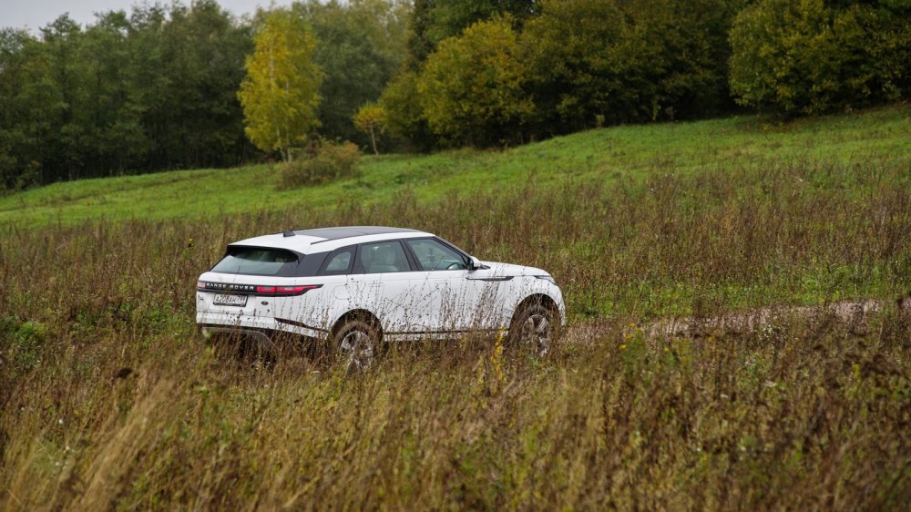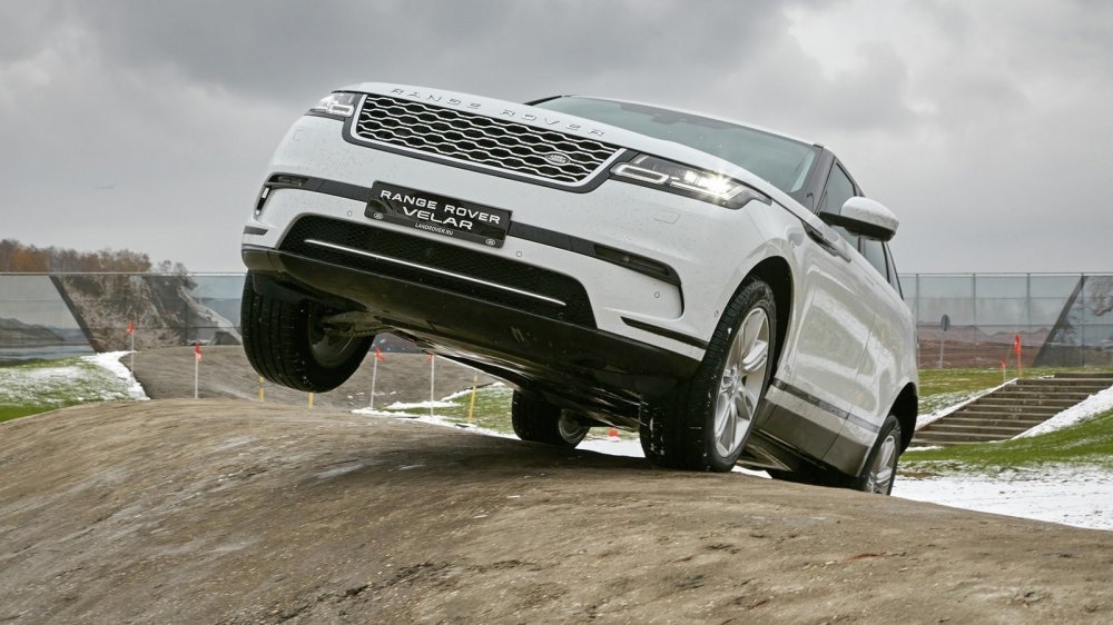 В отличие от Range Rover и Range Rover Sport, которые являются настоящими внедорожниками, Velar стоит все-таки отнести к категории кроссоверов. Во всяком случае, понижающей передачи у него нет. Зато есть система Terrain Response 2 (которая управляется не традиционной «шайбой» или контроллером с двумя клавишами, а нажатием на иконки на нижнем сенсорном дисплее). Но работает она все так же безукоризненно. Если добавить к этому наличие блокировки заднего дифференциала и пневмоподвеску с возможностью изменения дорожного просвета, то становится понятно, почему Velar легко и непринужденно преодолевает препятствия, которые я не рискнул бы штурмовать за рулем соплатформенного Jaguar F-Pace. Да, действительно, в случае F-Pace упор сделан на динамику и управляемость, а вот для Velar главное — ездовой комфорт и уверенное движение в сложных условиях.