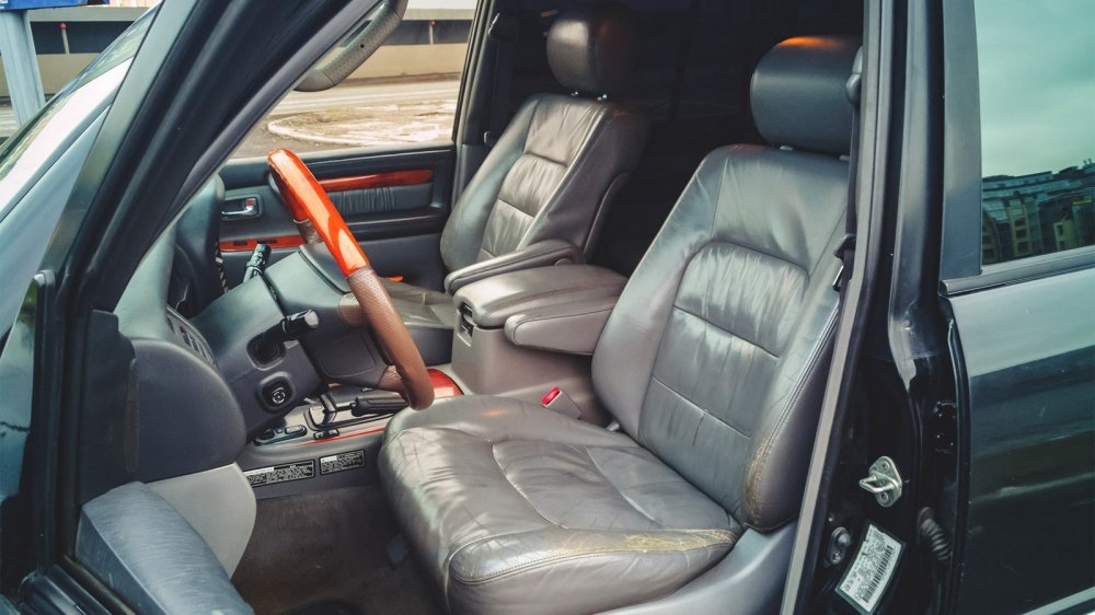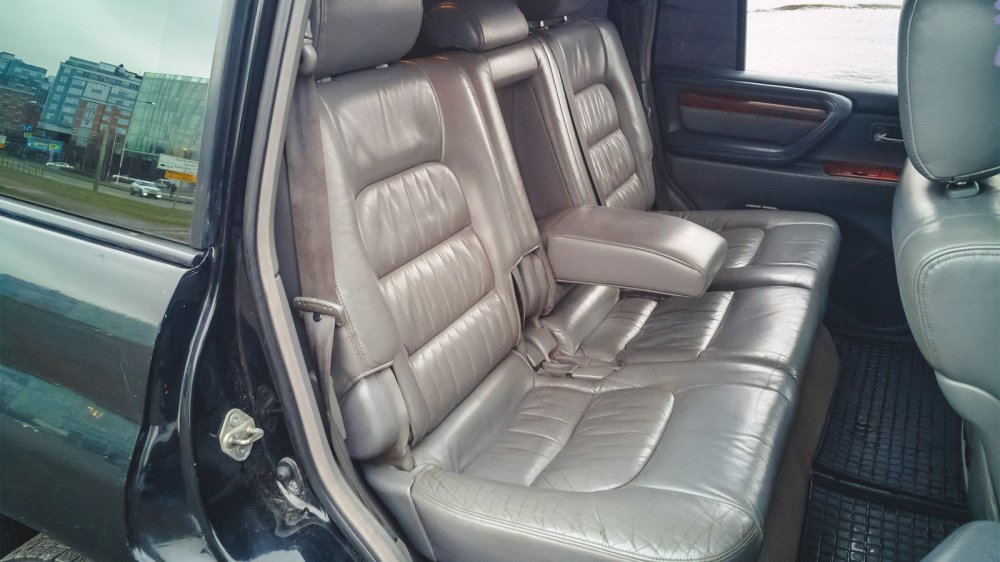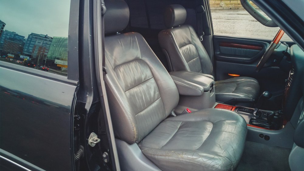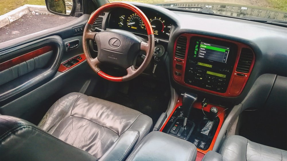 Стилистически внутри LX 470 – плоть от плоти Land Cruiser 100 VX, а значит, передняя панель незамысловата формами и не тянет на дизайнерский шедевр. Безоговорочно в памяти остаётся лишь красивое свечение приборной панели Optitron. Но обвинять японцев в халтуре не стоит. Двадцать лет назад сегмент роскошных джипов только зарождался, и отпугивать консервативных клиентов буйством форм было рискованно. Логичнее было потратиться на материалы отделки, что японцы и сделали. Натуральное африканское дерево в нужных местах приятно глазу, а прикасаться к дверным картам, обитым высококлассной кожей с мягкой подложкой – одно удовольствие.