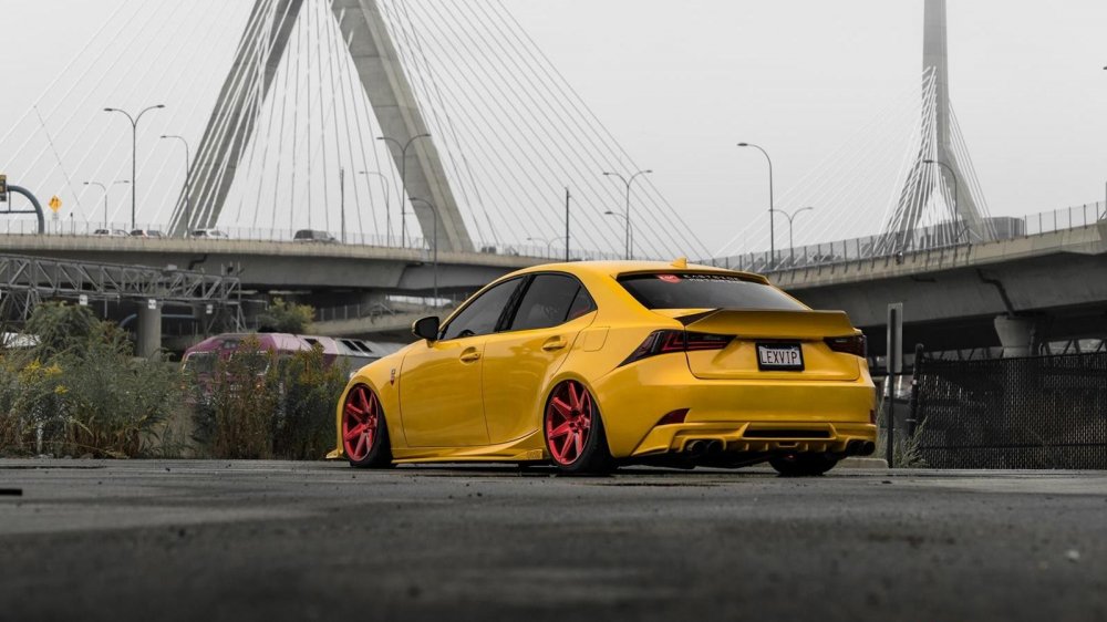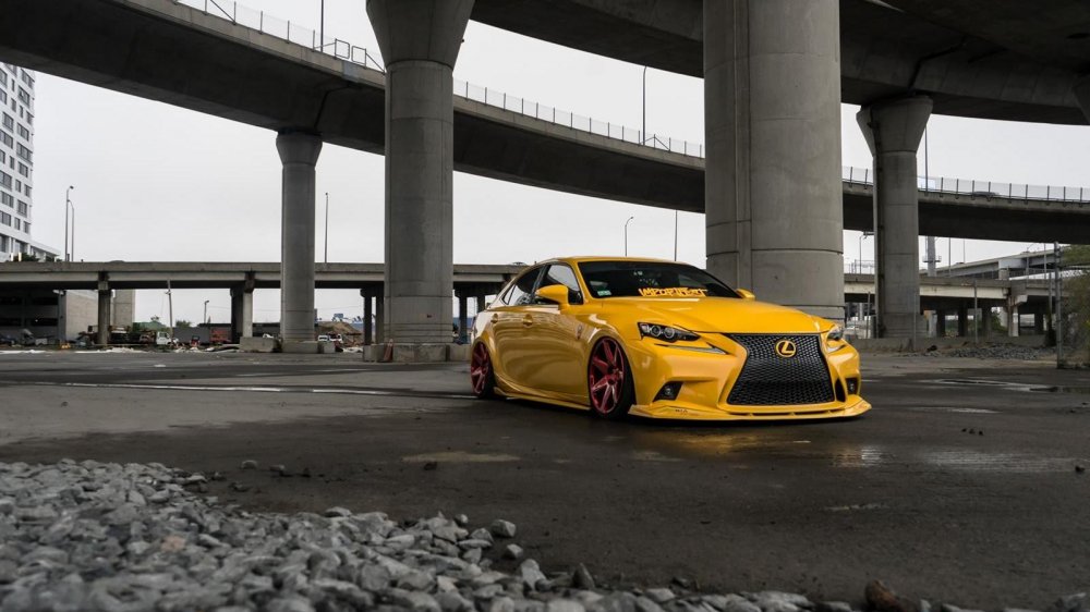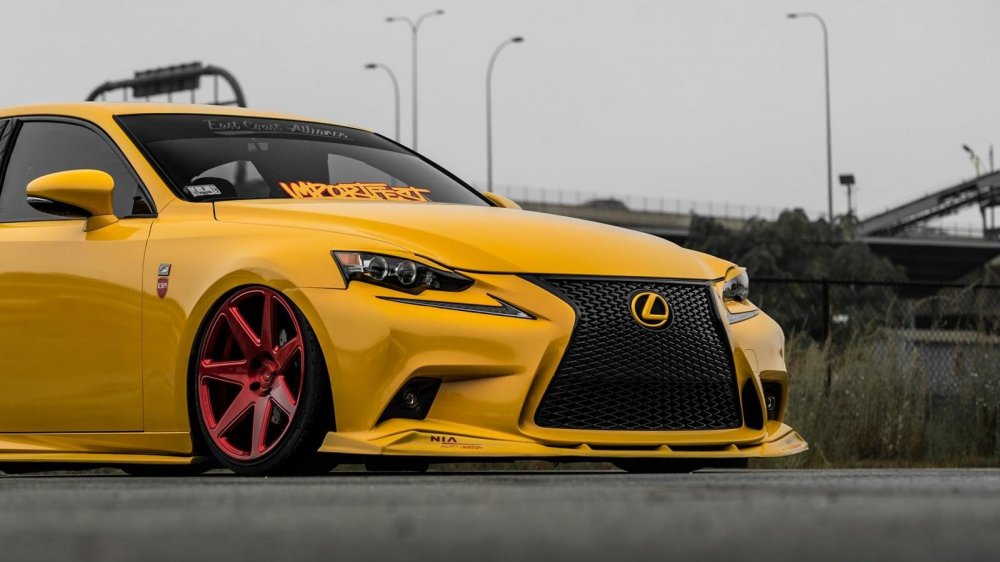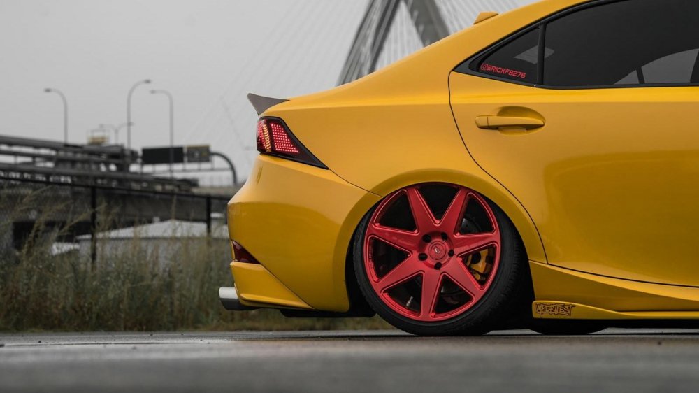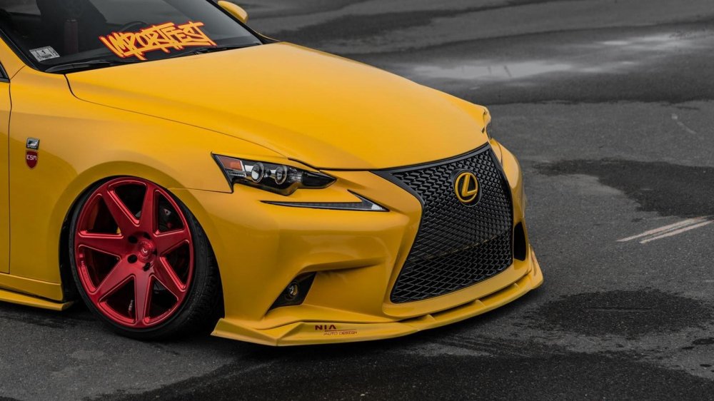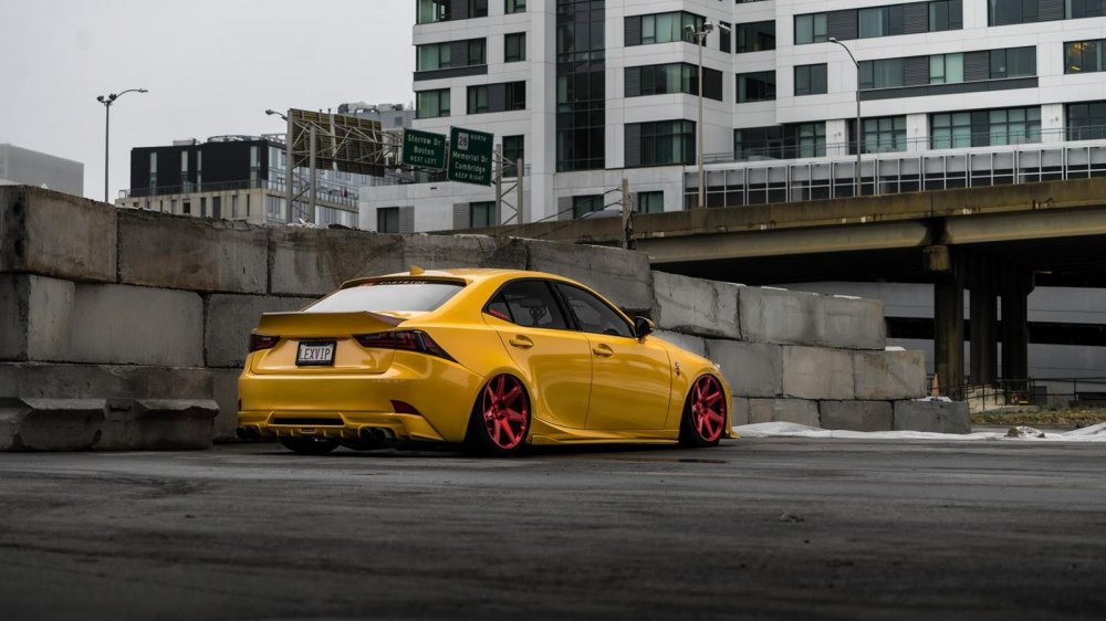 Так и случилось с этим Lexus IS, когда за дело взялись тюнеры из бостонской фиры Eastside Motoring. На «четырехдверку» установили агрессивный кузовной обвес, «натянули» желтый окрас и «обули» в алюминиевые 19-дюймовые колеса Vossen красного цвета.