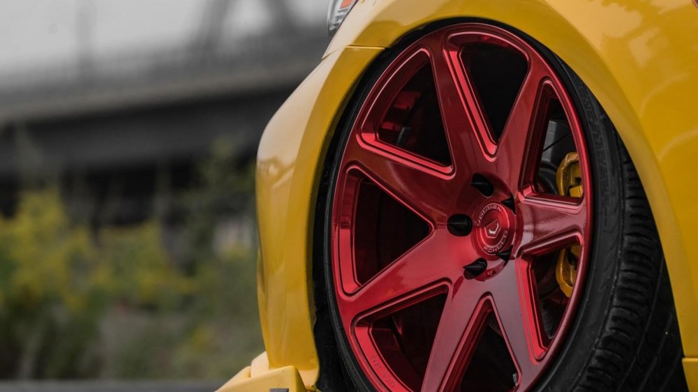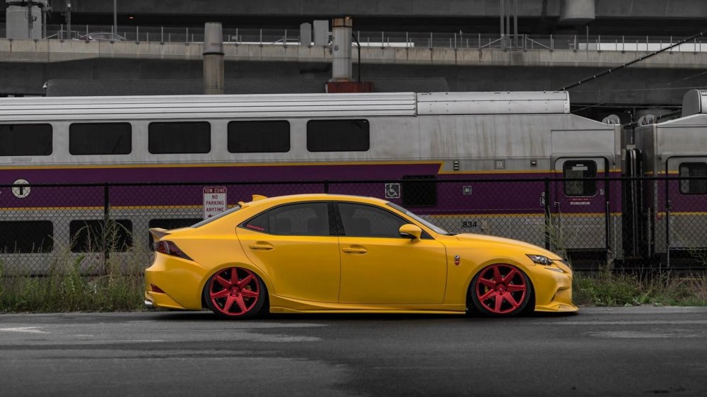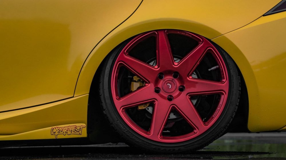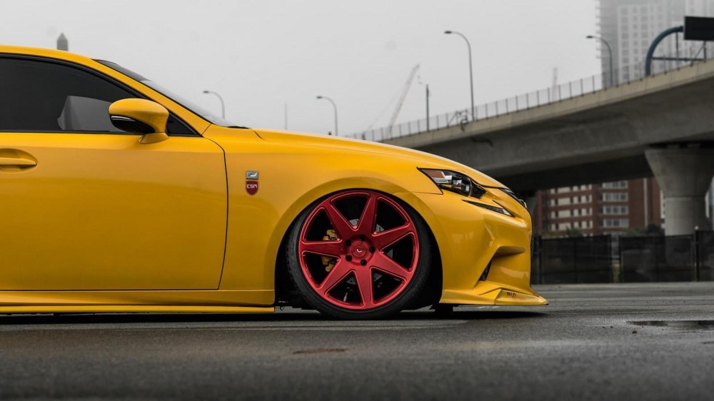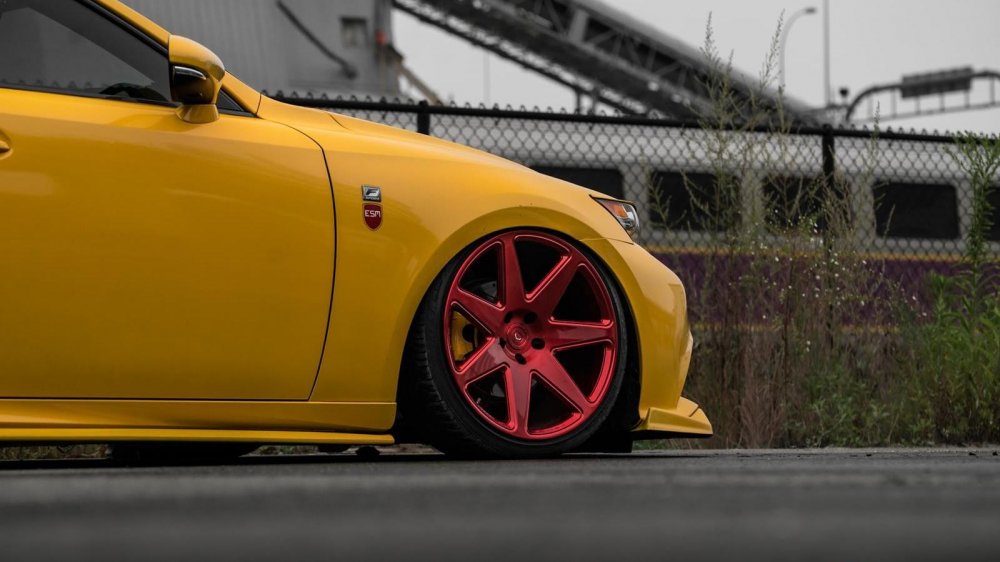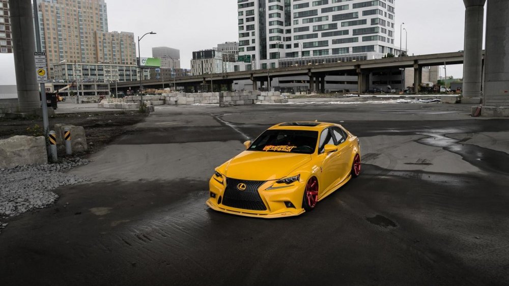 Так и случилось с этим Lexus IS, когда за дело взялись тюнеры из бостонской фиры Eastside Motoring. На «четырехдверку» установили агрессивный кузовной обвес, «натянули» желтый окрас и «обули» в алюминиевые 19-дюймовые колеса Vossen красного цвета.