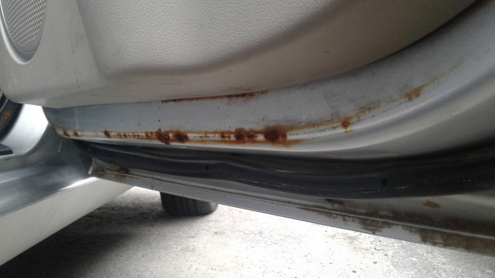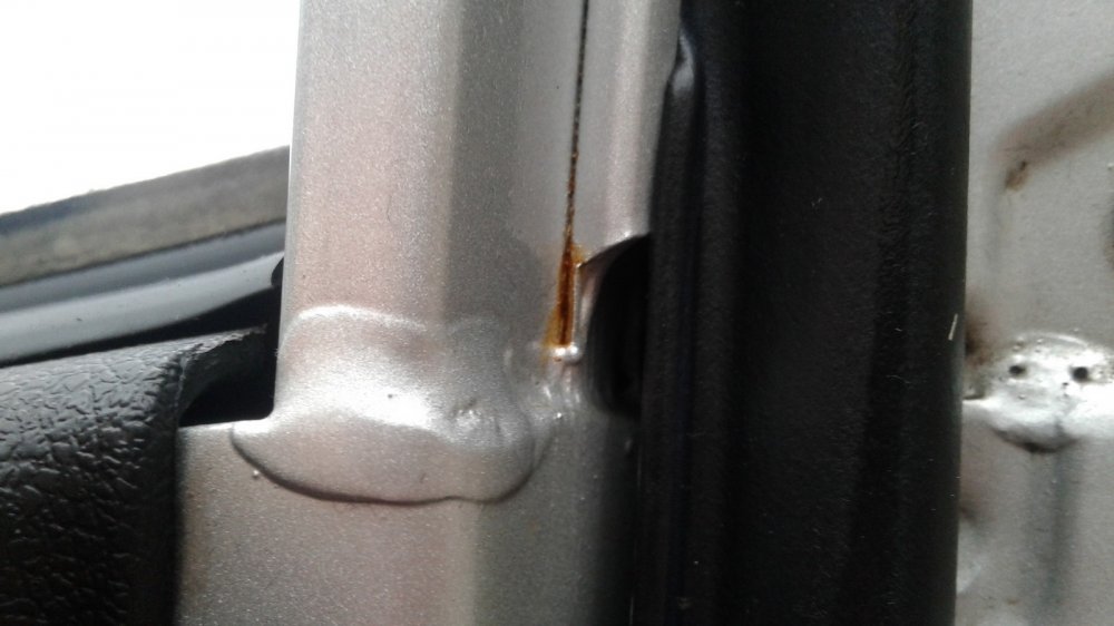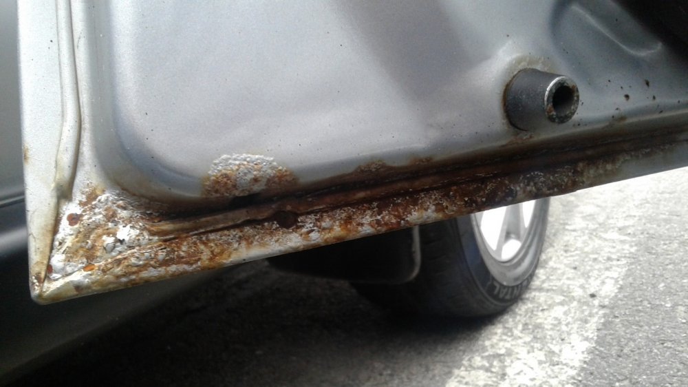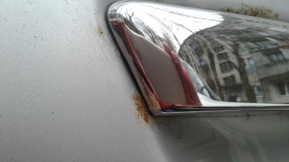 Краска на машине родная. А это значит… В общем, всё то же самое. Но тут ещё больше интересного можно увидеть на дверях. На предыдущей машине с коррозией всё было относительно неплохо, а тут краска почему-то слезает даже в месте контакта накладки двери с самой дверью. В других более традиционных местах двери тоже выглядят печально.