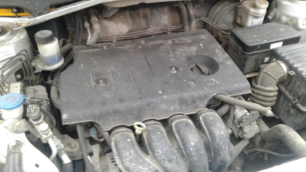 Под капотом всё тоже кажется приличным. Мотор чистый, потёков нет, холодный пуск посторонними звуками не пугает.