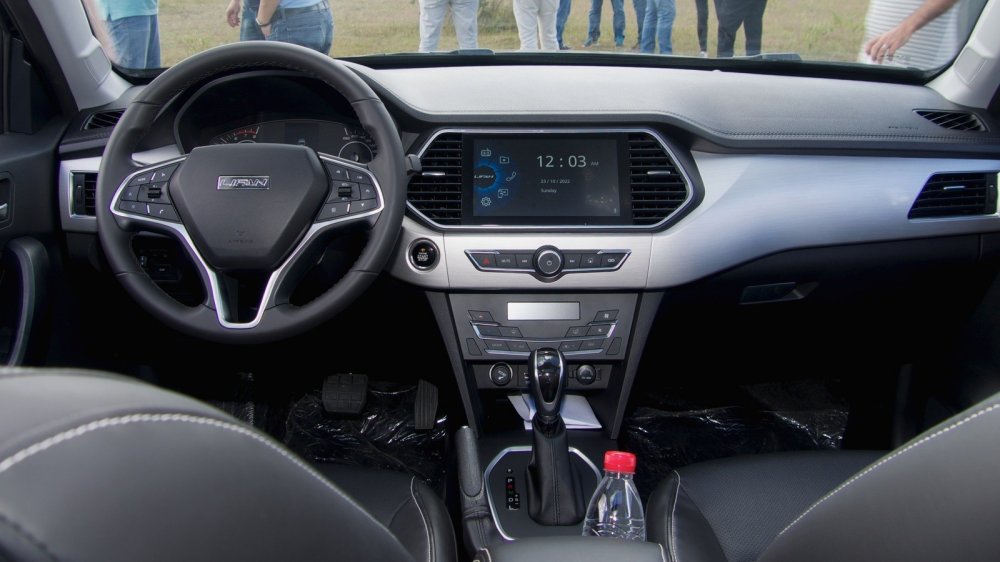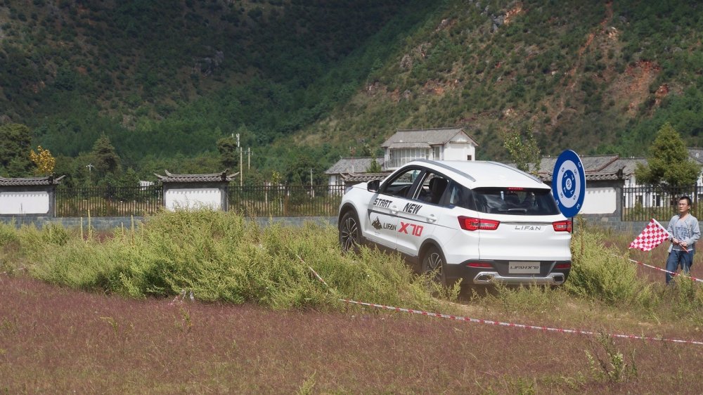 Но вот настает моя очередь сесть за руль… Организаторы приготовили для теста короткую грунтовую трассу протяженностью несколько сотен метров, не более… Ну и что можно успеть понять на такой короткой дистанции? Ну, что-то все-таки можно… Устраиваюсь в кресле и понимаю, что эргономика водительского сидения у Х70 получилась достаточно удачной. Может быть, при длительной эксплуатации и вылезут какие-то косяки, но пока мне все нравится: и руль очень цепкий, с удобным сечением, и профиль сидения нареканий не вызывает, и правая нога не колотится о жесткий край центральной консоли. Нажимаю на кнопку Start (ну да, в этом плане у автомобиля все по-взрослому), и под капотом оживает двухлитровый 139-сильный двигатель. Поехали!