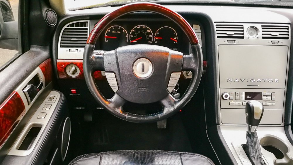 Как по-вашему, 300 л.с. — это много или мало? Cadillac считали, что неплохо для начала, предлагая для Escalade помимо 295-сильной базы также 345-сильную версию. Lincoln решили, что достаточно, поэтому даже рестайлинг, несмотря на смену двигателя, оставил графу мощности Navigator неизменной. Стоящая передо мной черная глыба родилась в 2003 году, а значит, крутящий момент 5,4-литровой "восьмерки" составляет 481 Нм, а коробка довольствуется всего четырьмя передачами.
