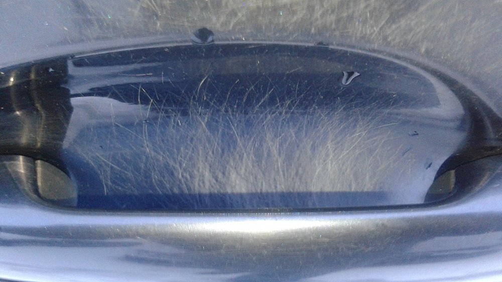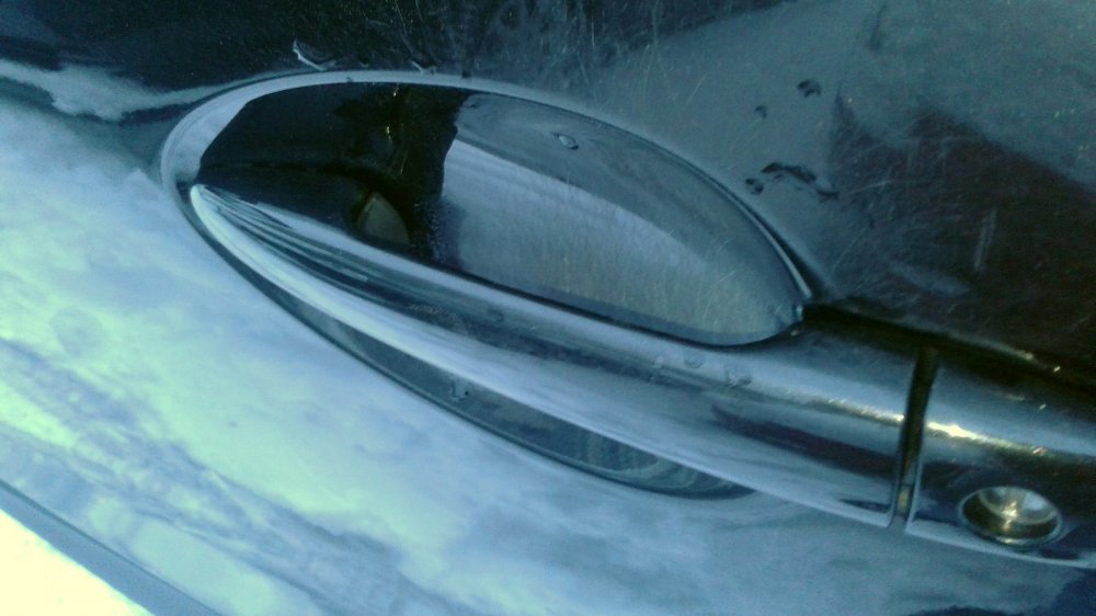 У машины нет ни одного крашенного элемента. Кстати, обратите внимание на толщину заводского слоя ЛКП. Маловато, да и царапается легко. Тут зона вокруг ручки водительской двери тоже выглядит не очень приятно.