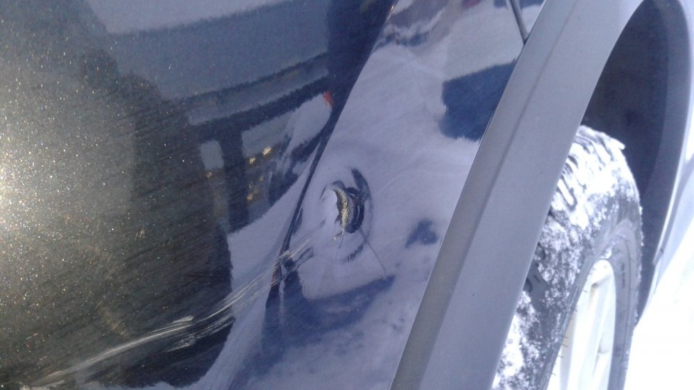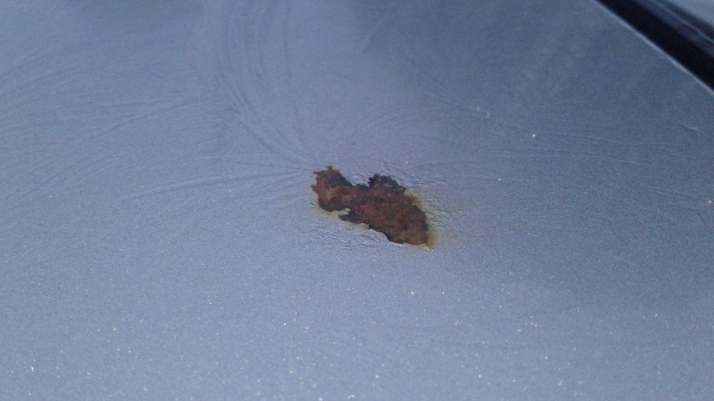 Ещё одна неприятность с ЛКП видна на крыше. Если бы кое-кто не тянул резину и вовремя устранил скол, ничего плохого бы не случилось. Но кое-кто резину тянул.