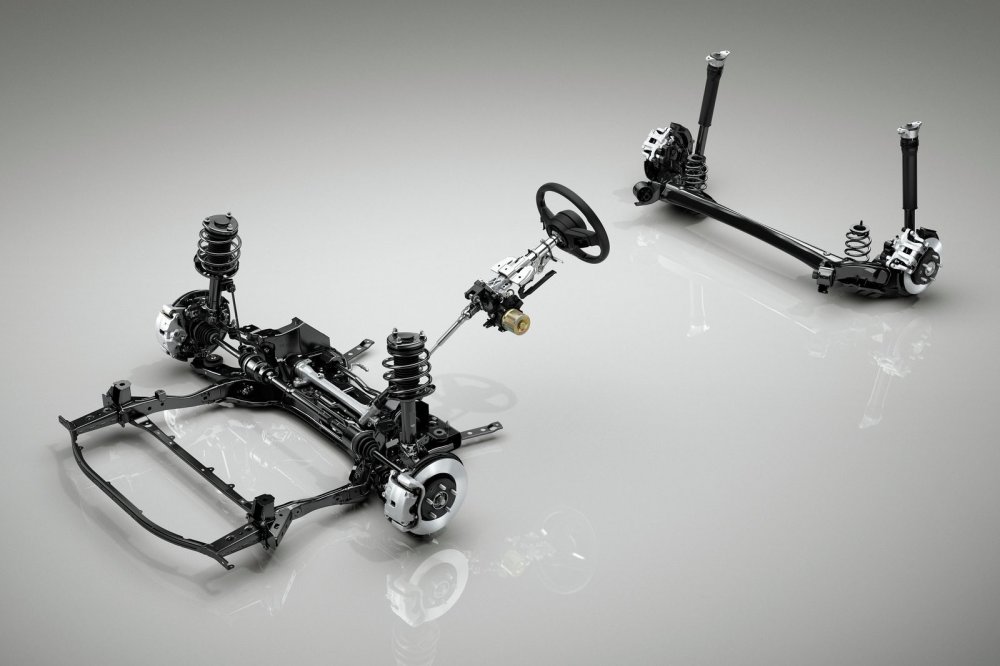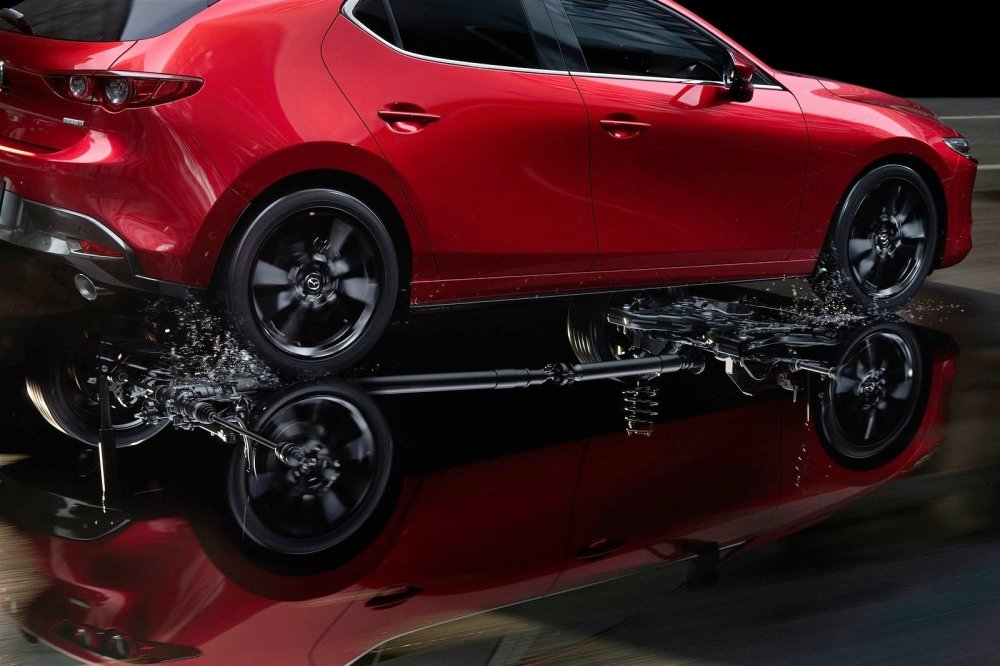 Увы, на американской выставке Mazda не рассказала всю правду о новой «трёшке» – подробных технических характеристик и описания конструкции нет, но о части фундаментальных изменений нам всё же сообщили. Так, новая архитектура Skyactiv подразумевает полузависимую заднюю подвеску (с торсионной поперечной балкой) вместо прежней многорычажной, но при этом, словно в утешение маздоводам, в виде опции на всех рынках, а не только на японском, будет предложена система полного привода i-Activ AWD, улучшающая драйверские характеристики машины. Что это за система, фирма пока не рассказывает, но, судя по единственному снимку, и у полноприводных «трёшек» тоже полузависимая задняя подвеска – редкое, но вполне рабочее решение, хорошо знакомое российским владельцам кроссоверов Suzuki SX4 прошлого поколения.