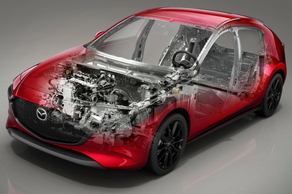 Также ничего не сказано о революционном бензиновом двигателе Skyactiv-Х, у которого воспламенение частично происходит от сжатия, что даёт ему поистине дизельную экономичность. Известно лишь, что этот двигатель будет впервые предложен именно на «трёшке», причём в составе гибридной силовой установки M Hybrid (скорее всего, речь идёт о так называемом мягком 48-вольтовом гибриде со стартер-генератором, связанным с коленвалом). Также на новой «трёшке» будут предложены более традиционные бензиновые двигатели Skyactiv-G (1.5, 2.0, 2.5) и новый турбодизель Skyactiv-D 1.8, но их характеристики тоже пока не объявлены. Коробки передач – 6-ступенчатая «механика» либо 6-ступенчатый «автомат».