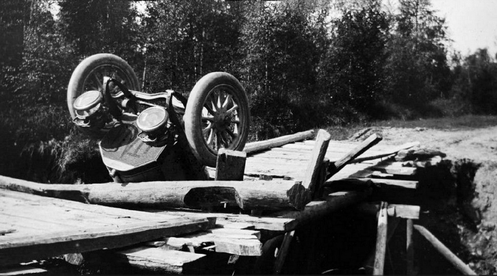 Но до начала смуты 17-го года переправа работала как часы. А еще она оказалась вписана в хронику событий, навсегда вошедших в историю автомобиля и мирового автоспорта. Я говорю о гонках Пекин–Париж и Нью-Йорк–Париж, которые прошли в 1907 и 1908 году соответственно. Это были совершенно фантастические проекты, ознаменовавшие превращение автомобиля из дорогой игрушки в реальное транспортное средство. Его участники проявили настоящее мужество и упорство, но временами — феерическое разгильдяйство и надежду на «русский авось», хотя русских среди них как раз и не было. Вот что пишет итальянский журналист Луиджи Барзини (он проехал всю гонку в экипаже автомобиля Itala, сопровождая миллионера, мецената, путешественника, альпиниста, наездника и автолюбителя князя Шипионе Боргезе) в очерках, опубликованных в 1908 году журналом «Автомобилист»: