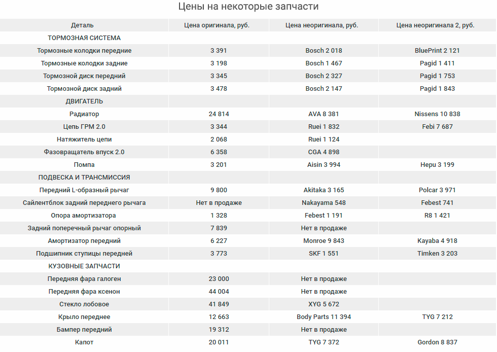 Очень слабая конструкция оптики, которая затирается снаружи и разрушается изнутри, слабые крепления бамперов, неудачная конструкция выгорающих задних фар — это все издержки сравнительно недорогой конструкции. Но оригинальные детали не слишком дороги, б/у детали и аналоги стоят совсем уж дешево на фоне европейских аналогов, и за серьезный недостаток такого рода поломки считать нельзя.
