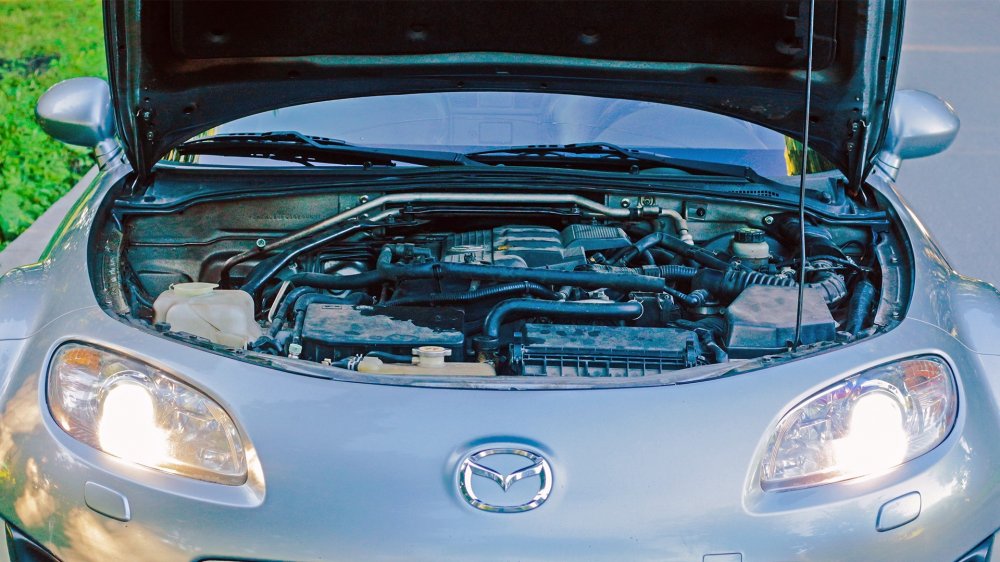 Спорткар возможен без мощного двигателя – доказано Lotus, MG и целой армией покинувших этот мир британских брендов. Если оставить за скобками эксперименты с турбонаддувом (скажем, ограниченная партия родстеров второго поколения для австралийского рынка имела мощность 211 л.с.), то максимальная отдача двигателей MX-5 уже давно не поднимается выше 170 л.с. Серебристому родстеру досталась 160-сильная версия расположенной продольно двухлитровой «четверки» MZR.