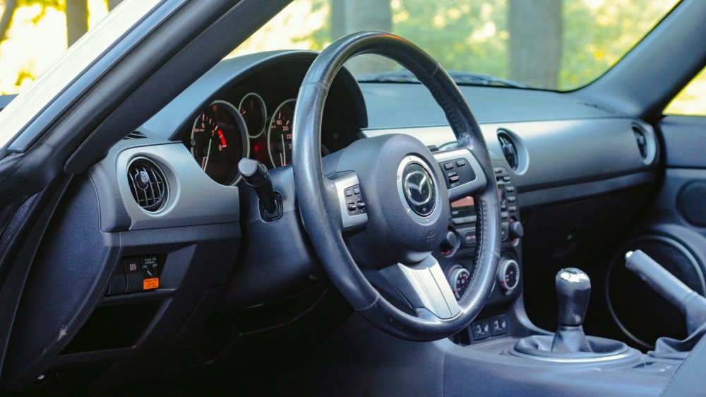 Интерьер топовой для российского рынка версии Sport скуп на дизайнерские изыски, а самой продвинутой опцией является климат-контроль. Зато MX-5 не пытается казаться тем, чем не является. Эта честность вкупе с окружающим минимализмом, собранном из жестких пластиков, подкупает куда больше ненужных претензий на премиум, как чума поразивших все автомобильные классы без исключения.