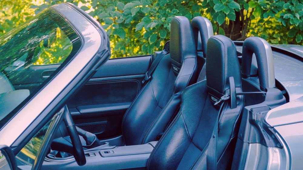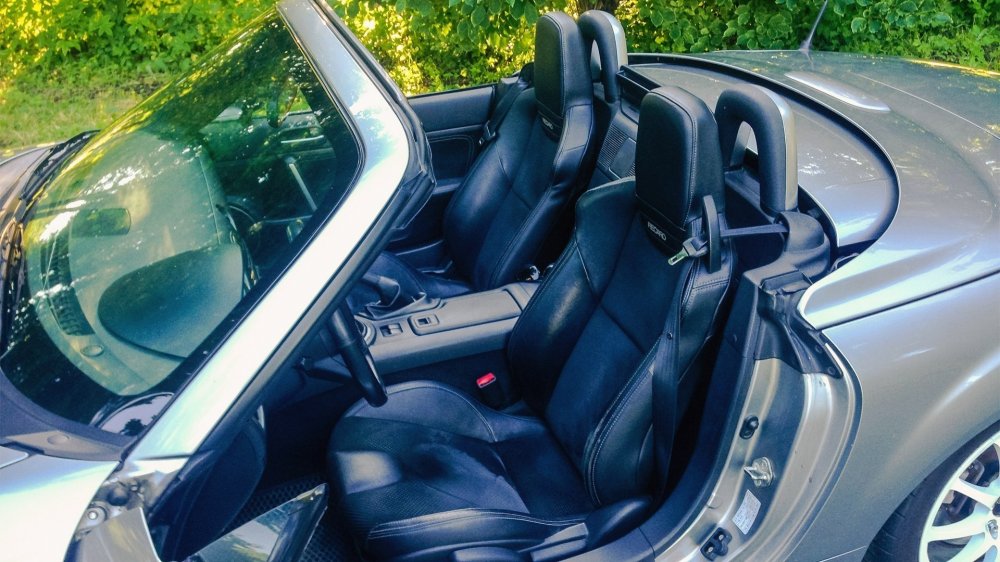 Стандартные для двухлитровых MX-5 с механикой в комплектации Sport кожано-алькантаровые Recaro – явный намек на маздовские приоритеты. Кресла хороши ортопедическим профилем и развитой боковой поддержкой, но требовательны к росту сидящего. Особям выше 185 см будет в них некомфортно.
