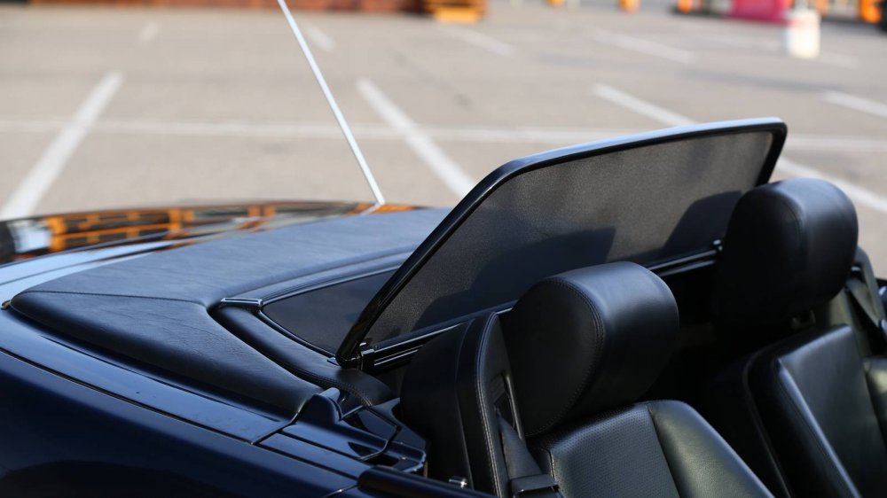 Отдельная съемная опция – сетчатый ветровой экран, монтируемый на автоматическую дугу безопасности. Подпружиненный, он наклонен по ходу движения, но на скорости наклоняется назад, помогая оптимально «выгонять из салона ветер», дабы он меньше беспокоил седоков. Эта рамка с сеткой рассчитана на езду исключительно вдвоем, поскольку не позволяет сесть пассажирам заднего дивана, упираясь своей кромкой им в спины. Поэтому при попытке сесть в SL500 вчетвером (что сложно, но можно!), сетку нужно демонтировать.