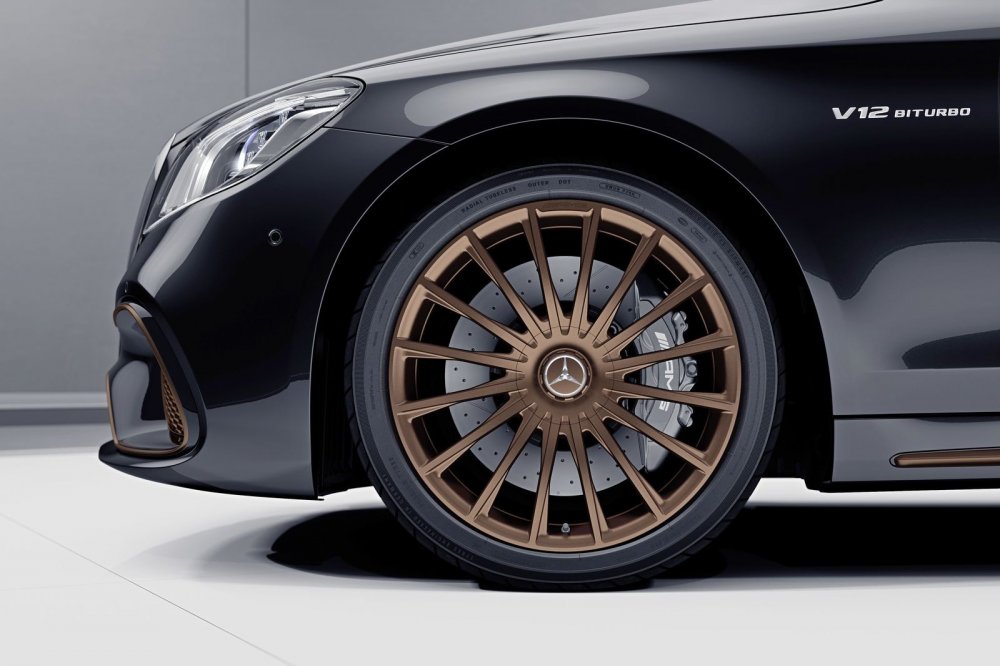 Финальная партия из 130 седанов адресована коллекционерам, которые хранят дорогие машины как реликвии и крайне редко выезжают на них из гаража. Чтобы памятный Mercedes-AMG S 65 не сильно пылился, в комплекте с ним идёт фирменный чехол с бронзовыми надписями. Бронзовый цвет также используется в отделке нижнего периметра кузова: им окрашены вставки в бамперах, боковые молдинги и 20-дюймовыеы колёсные диски. Основной же цвет кузова – безальтернативный чёрный глянец.
