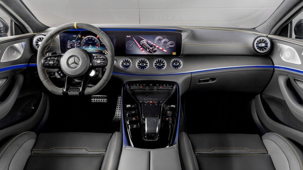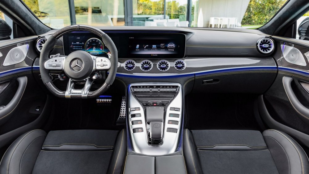 Список оборудования моделей включает: мультифункциональное рулевое колесо AMG Performance, спортивные кресла AMG с обивкой из кожи nappa, полностью цифровую приборку AMG Supersport, светодиодную головную оптику Multibeam, аудиосистему объемного звучания Burmester и атмосферную подсветку салона с гаммой из 64 цветов.